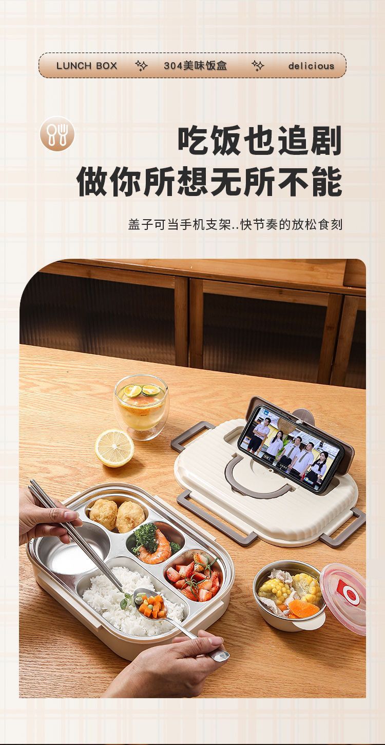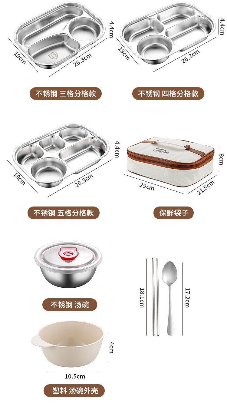 | five grid +304 soup bowl + thermal bag + tableware(五格+304汤碗+保温袋+餐具) | USD $6.47 | 999999 piece available |