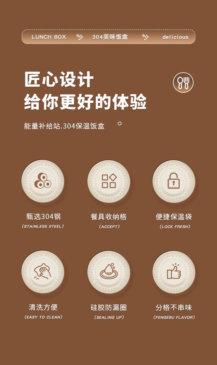 | 5 grids + soup bowl +304 tableware + thermal bag(5格+汤碗+304餐具+保温袋) | USD $8.15 | 999999 piece available |