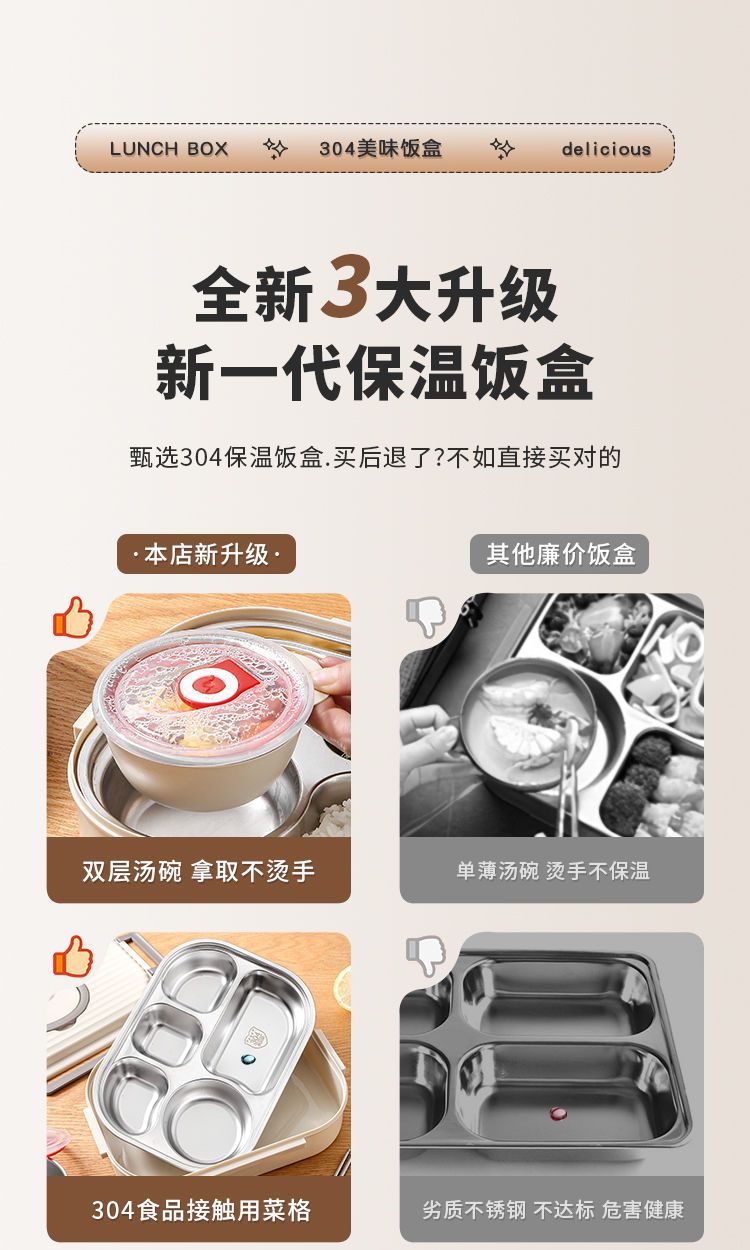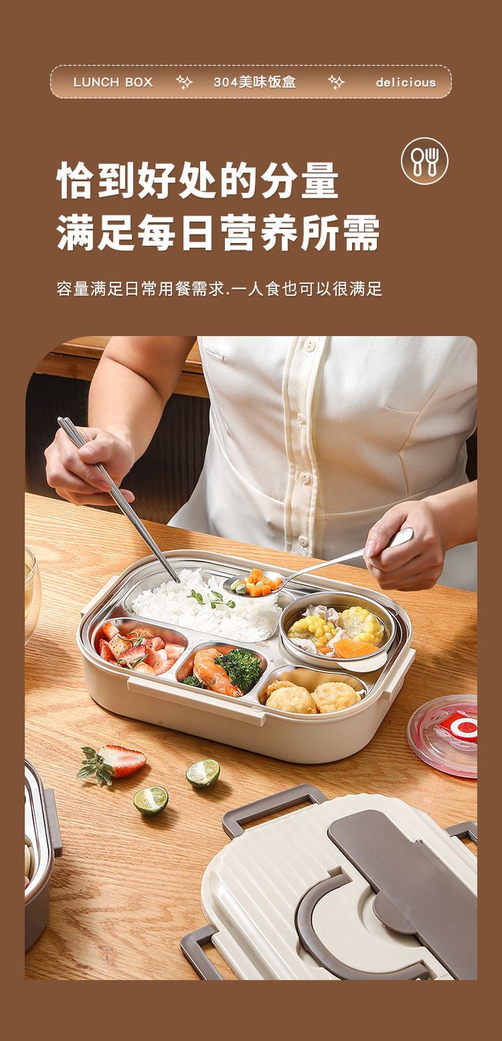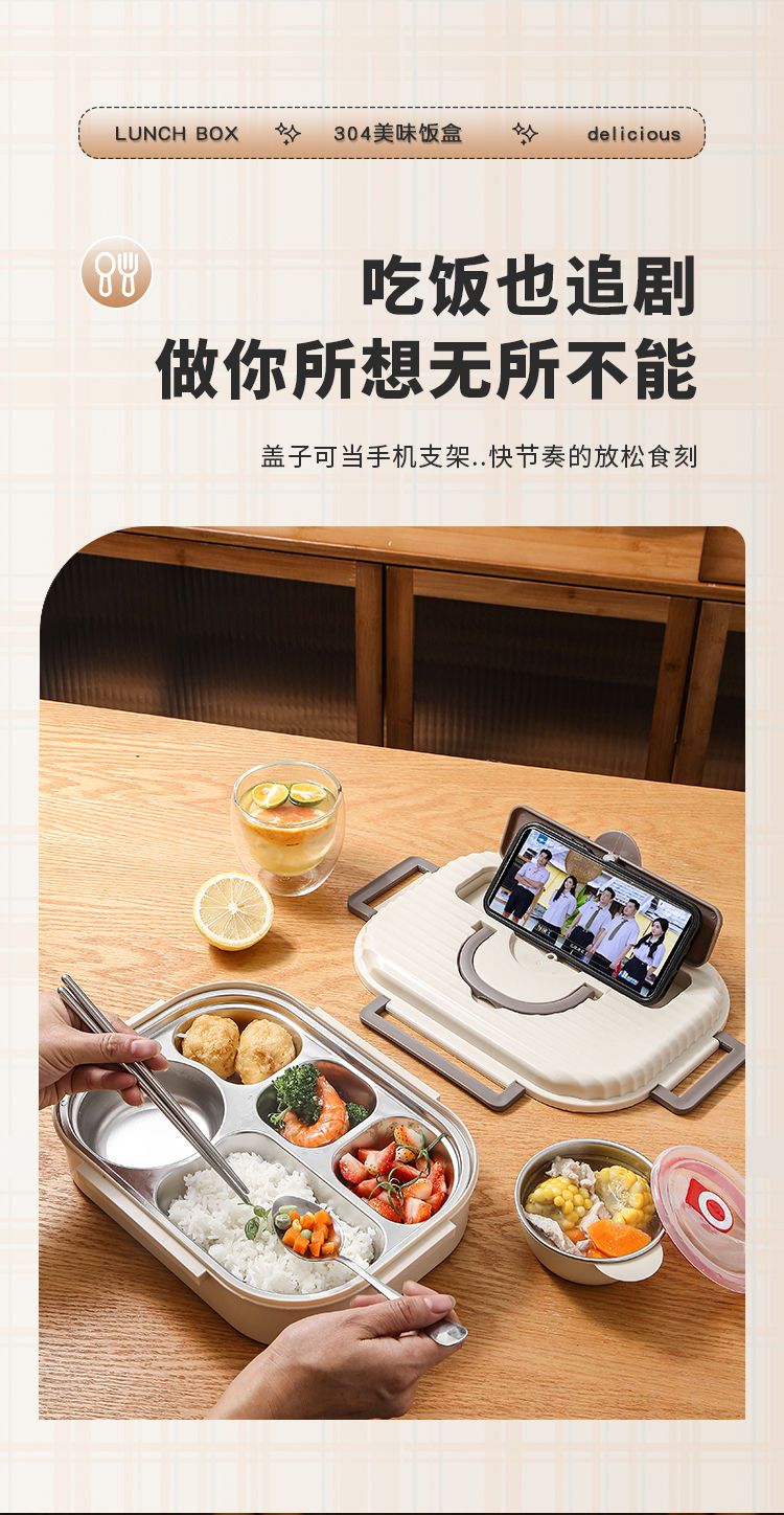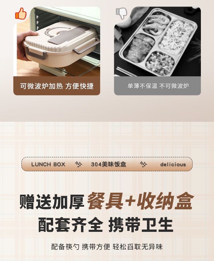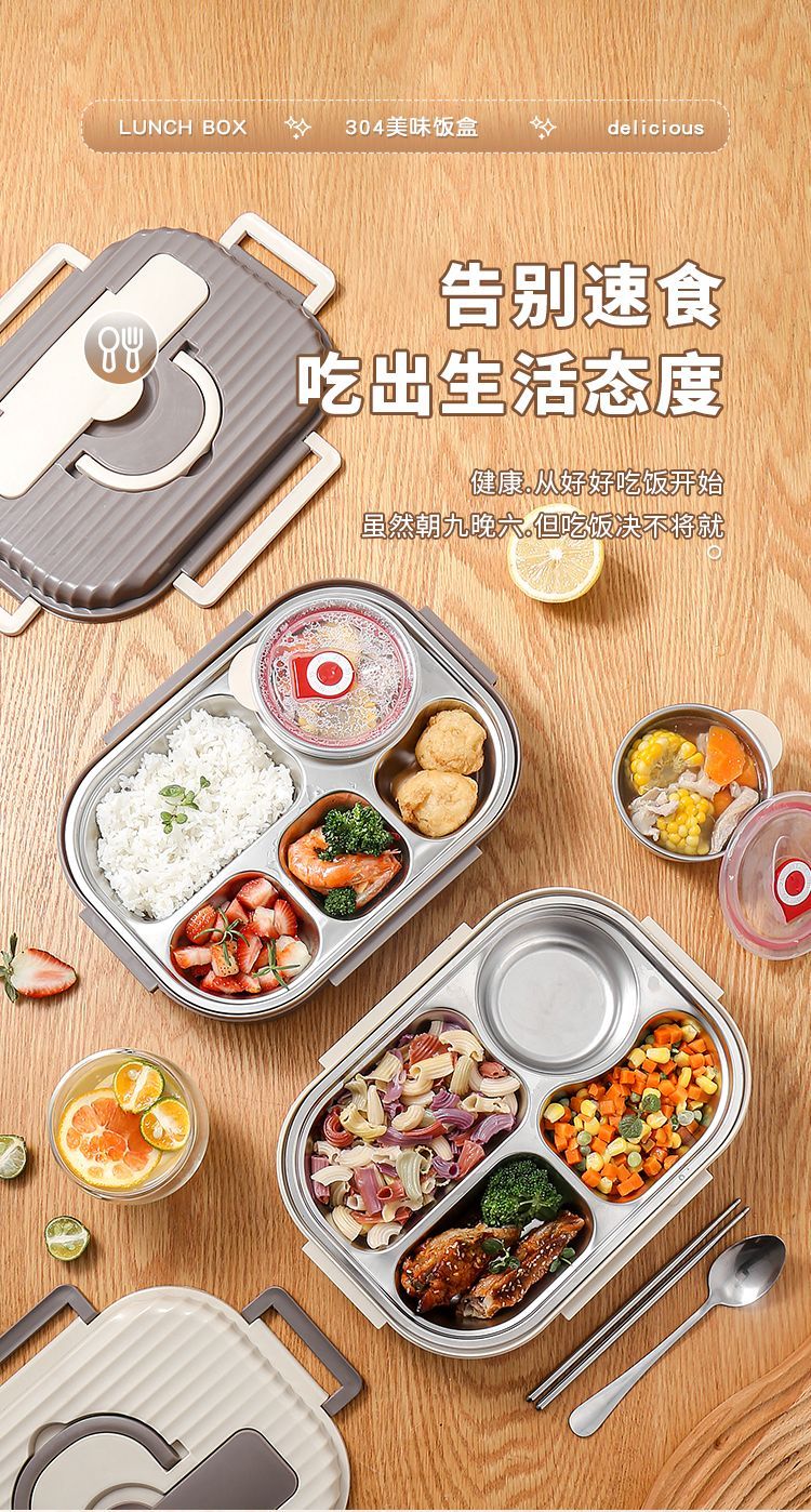 304不锈钢保温饭盒带盖上班族多格学生成人带饭餐盒食堂微波加热