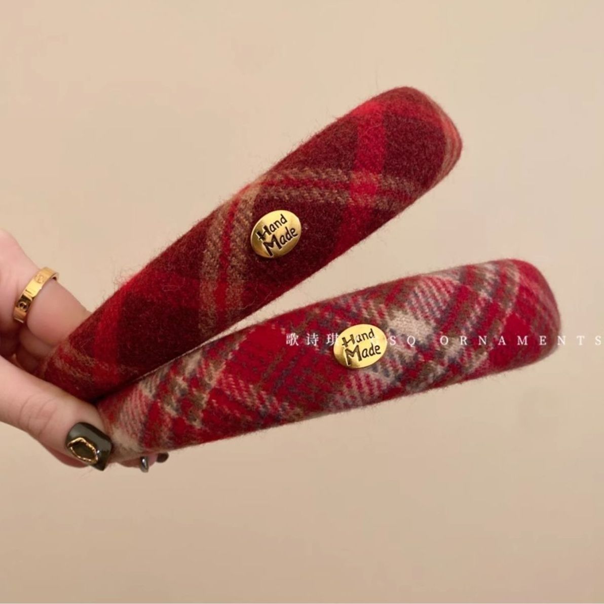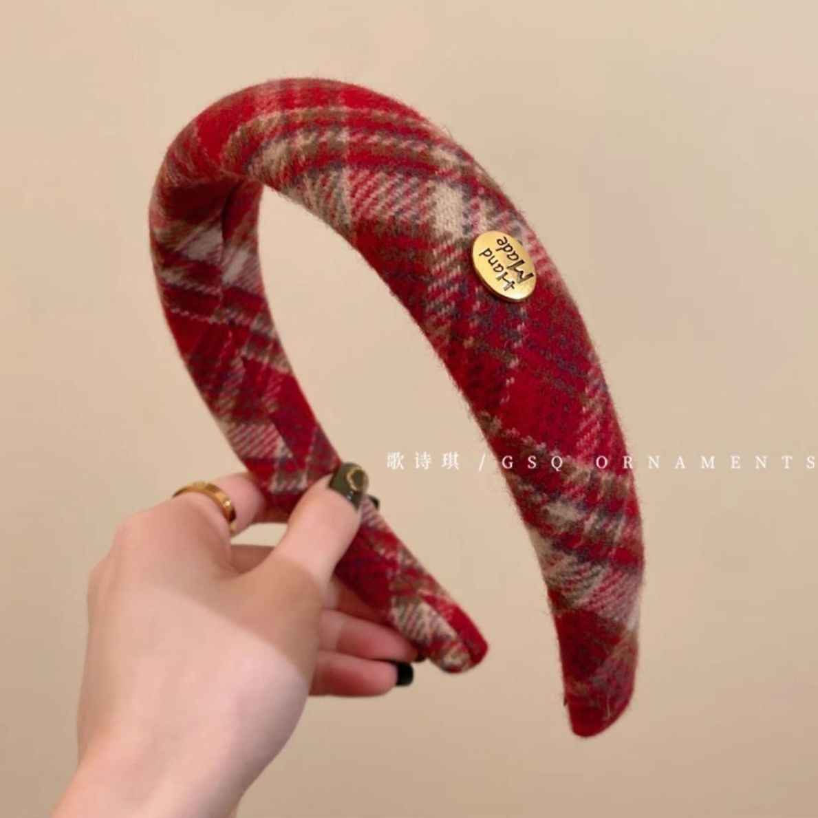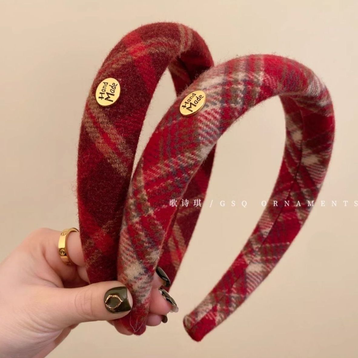 秋冬高颅红色格子金标发箍女2024发卡新款气质高级复古圣诞节头饰