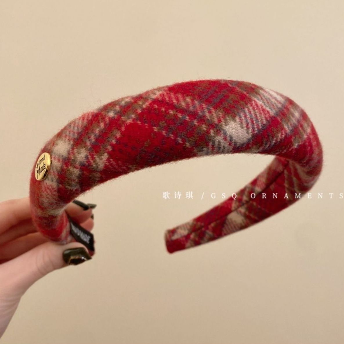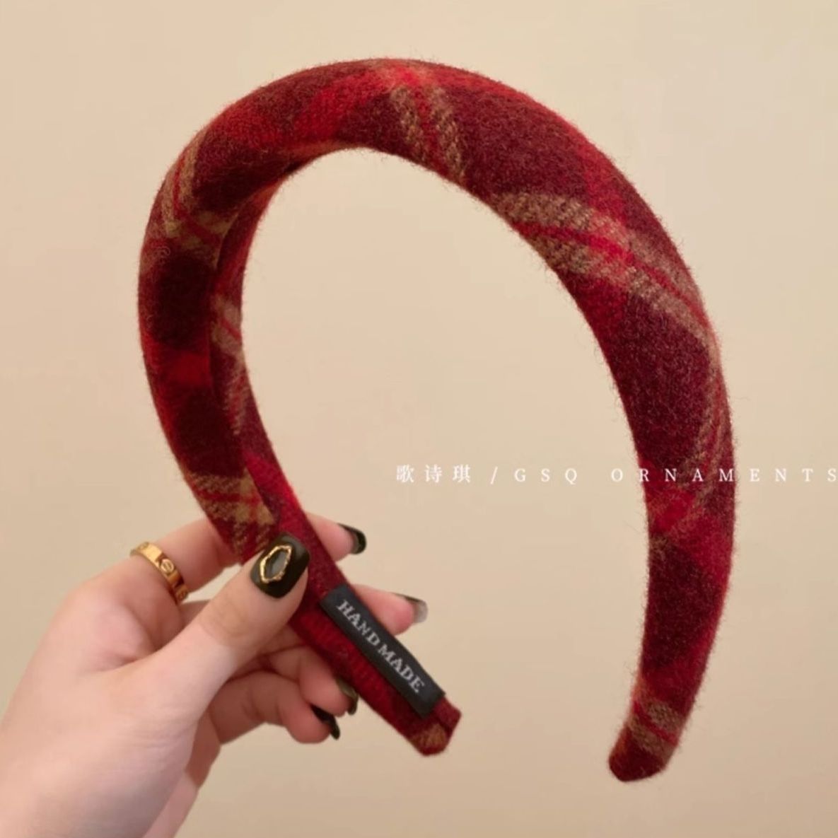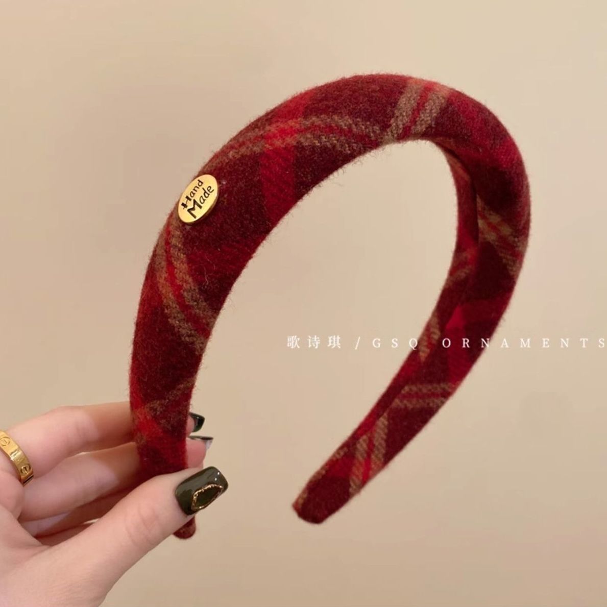 秋冬高颅红色格子金标发箍女2024发卡新款气质高级复古圣诞节头饰