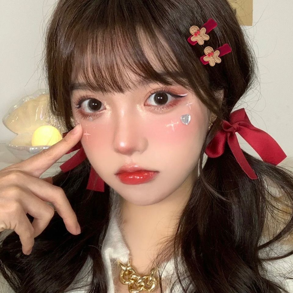 圣诞节红色丝绒发夹麋鹿圣诞树边夹少女心高颜值刘海夹秋冬头饰