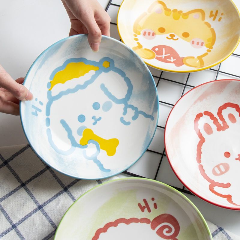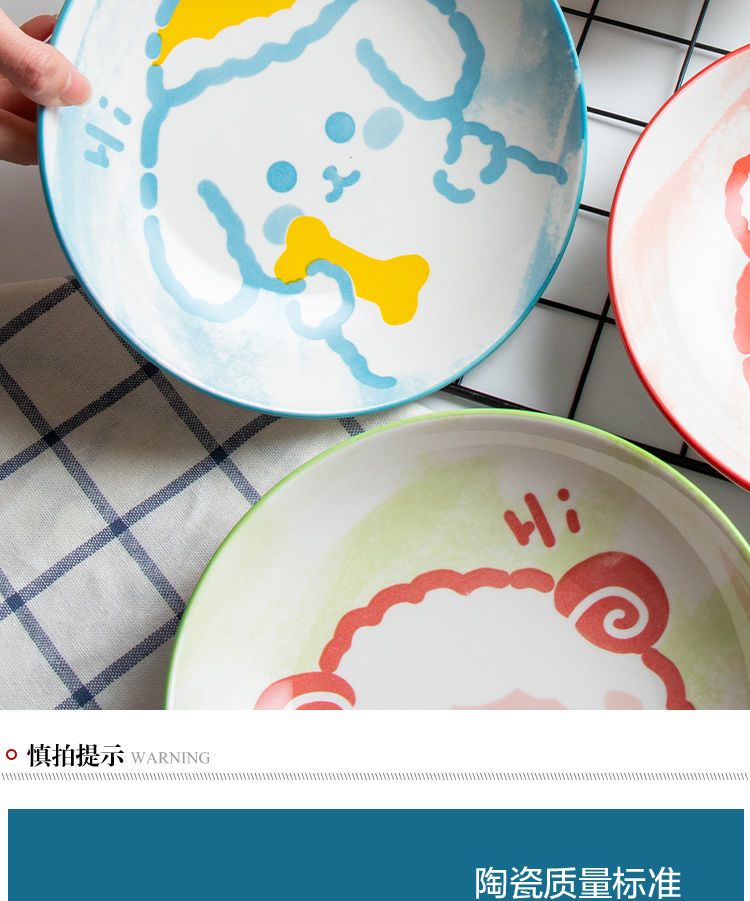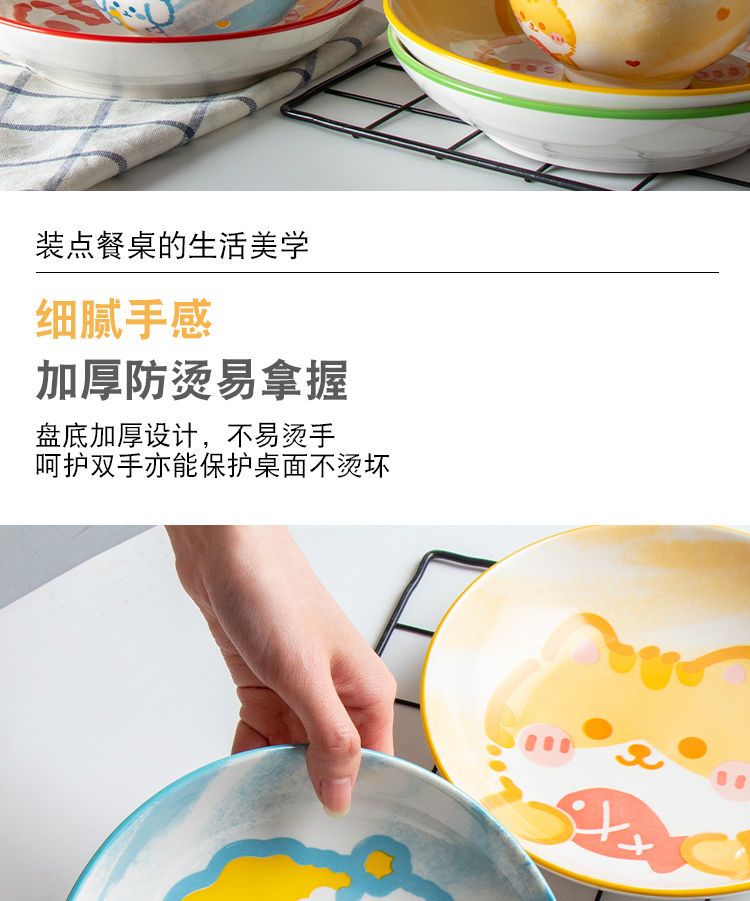 可爱的陶瓷餐盘卡通碟子高颜值餐具组合网红创意家用8英寸菜盘子