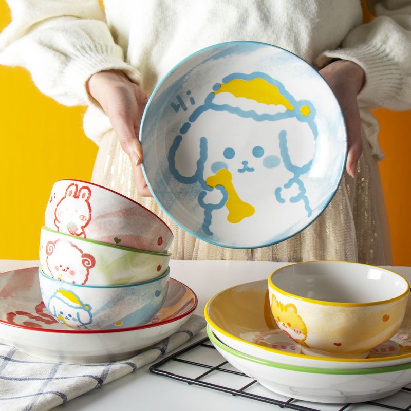 | 2 packs [adorable rabbit + adorable dog] 8-inch deep plates(2个装【萌兔+萌犬】8英寸深盘) | USD $4.97 | 999999 piece available |