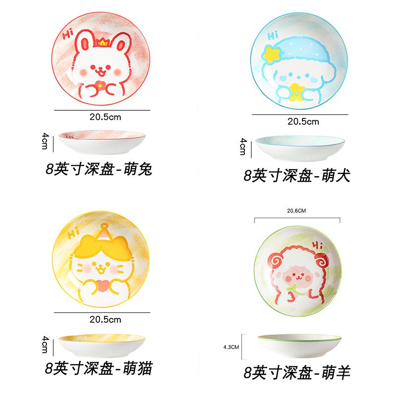 | 4 packs [one of the four cute pets] 8-inch deep plates(4个装【萌宠四款各一】8英寸深盘) | USD $7.26 | 999999 piece available |