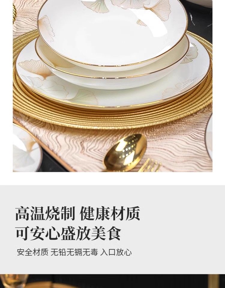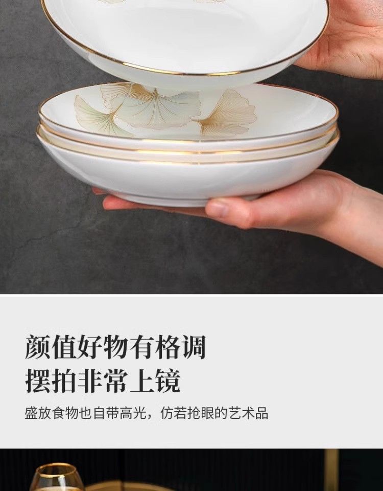 高温釉下彩菜盘家用2024新款圆盘深盘景德镇陶瓷碗盘碟套装蒸鱼盘