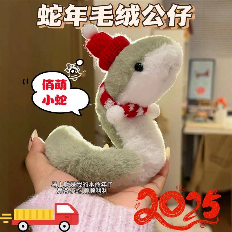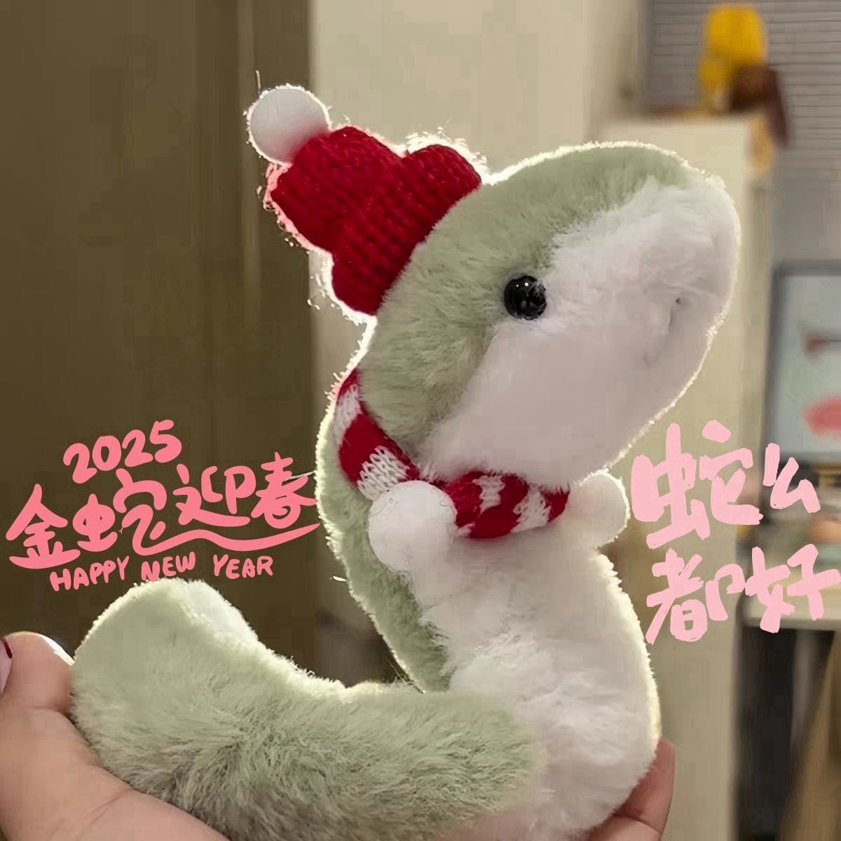 批发摆摊带帽子可爱小蛇公仔布娃娃毛绒玩具小青蛇摆件蛇年吉祥物