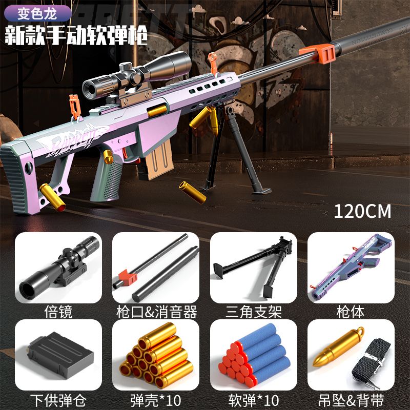 超大号巴雷特抛壳软弹枪仿真98k狙击枪awm变色龙儿童模型抢玩具枪