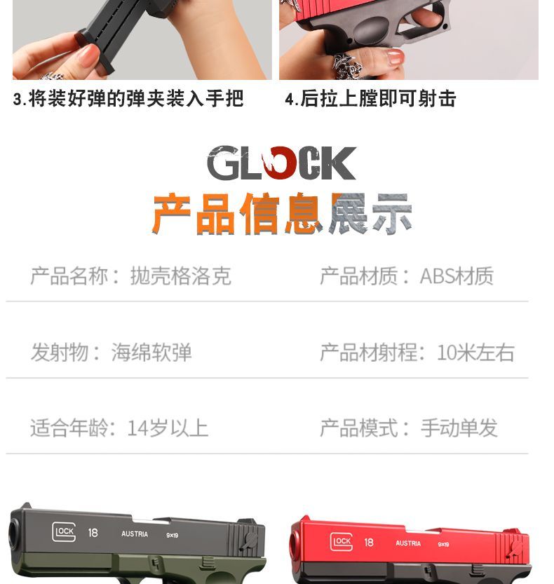 男孩六一礼物战术板格洛克抛壳软弹儿童小手枪仿真模型玩具可发射