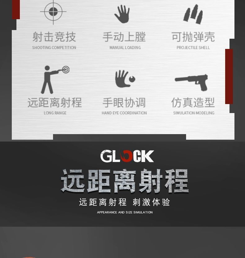 | standard-10 soft elastic +8 shell case +1 cartridge(标配-10软弹+8弹壳+1弹夹) | USD $3.4 | 999999 piece available |