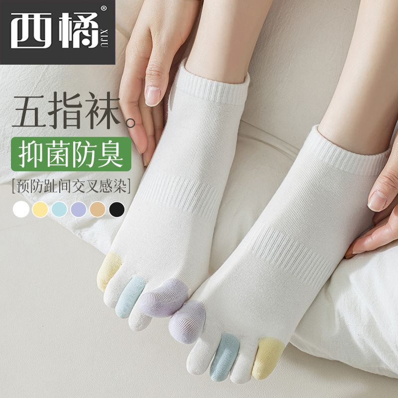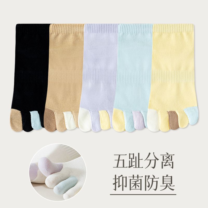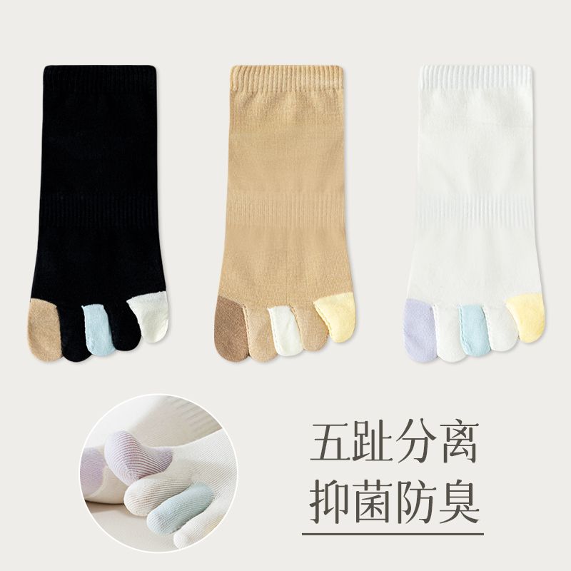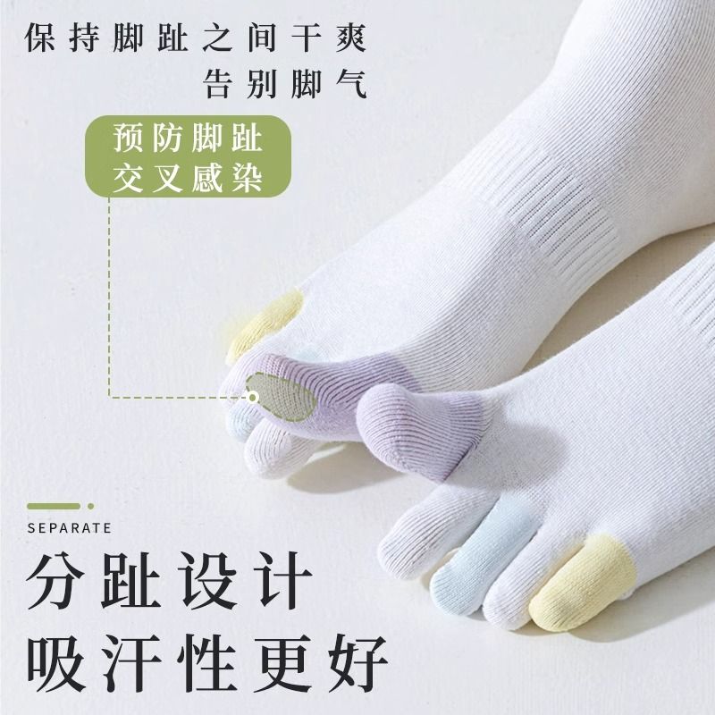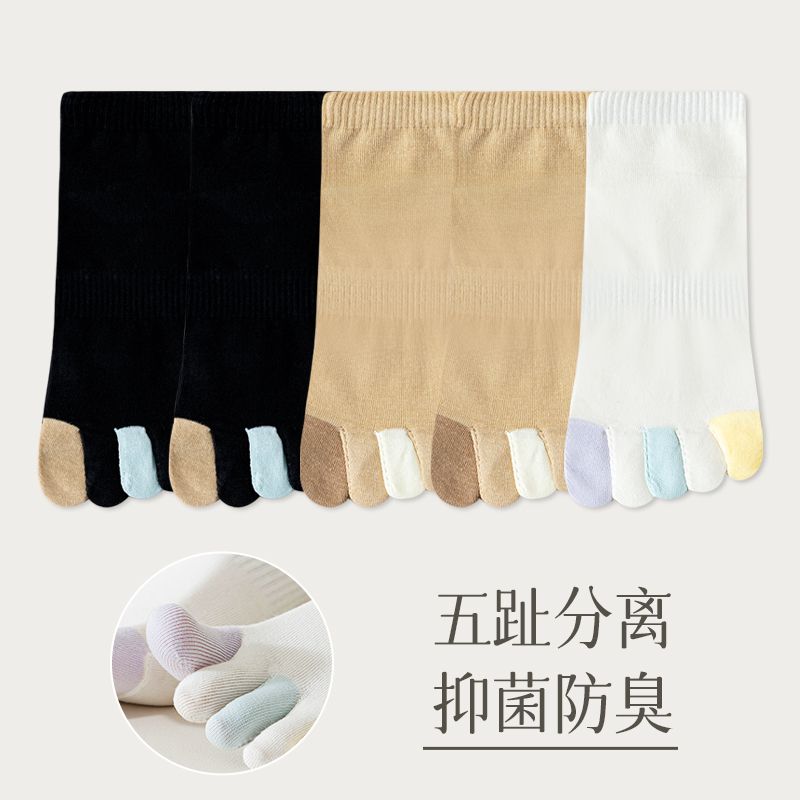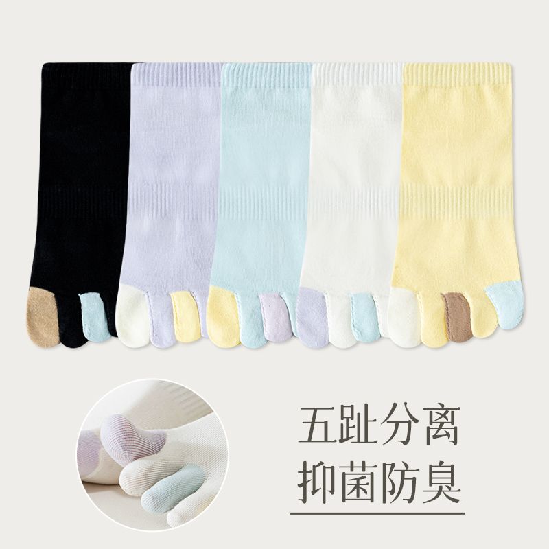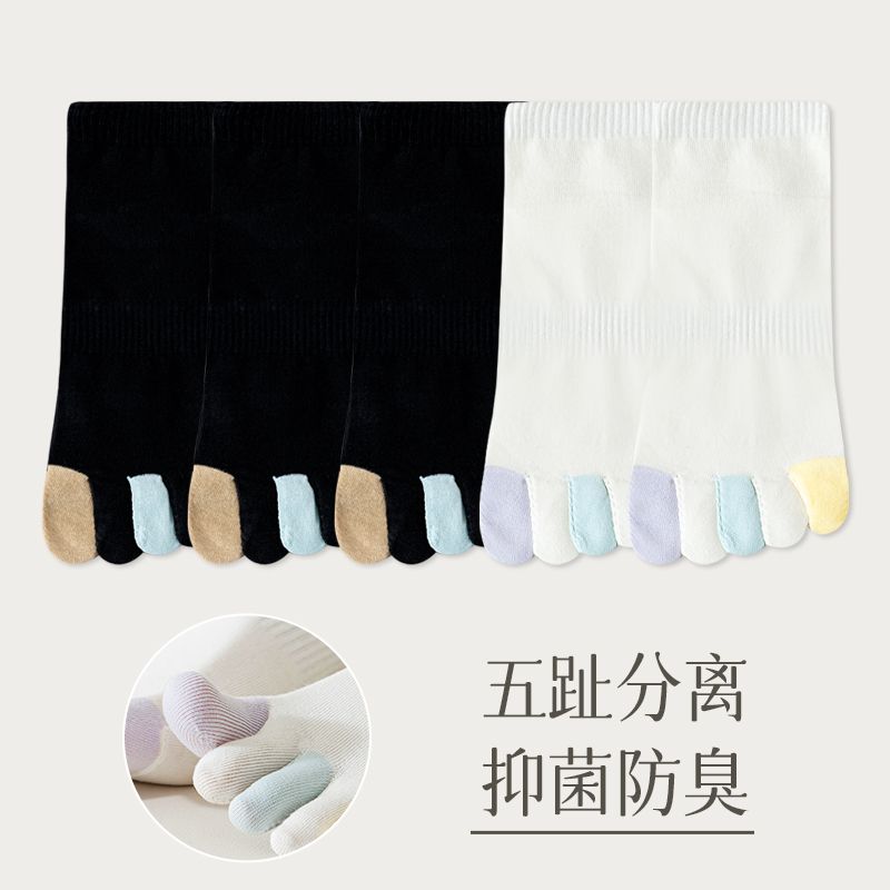 五指袜子女春秋款纯棉透气黑白色分趾脚趾袜防臭吸汗女士短袜夏季