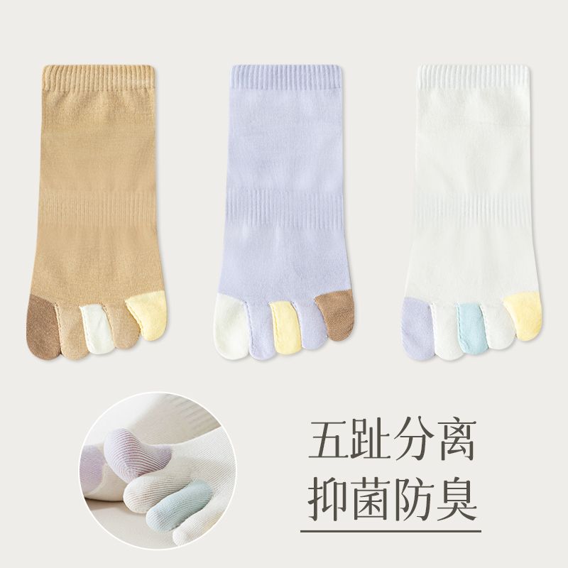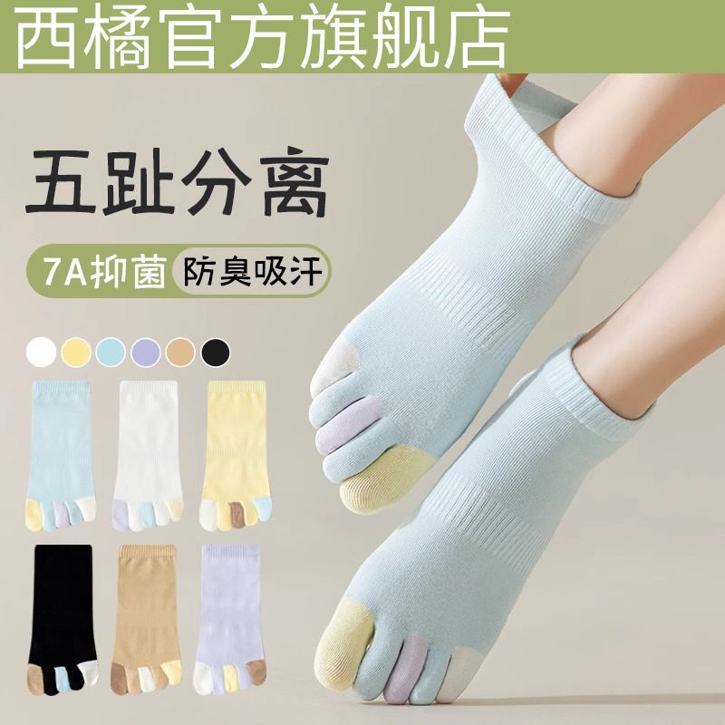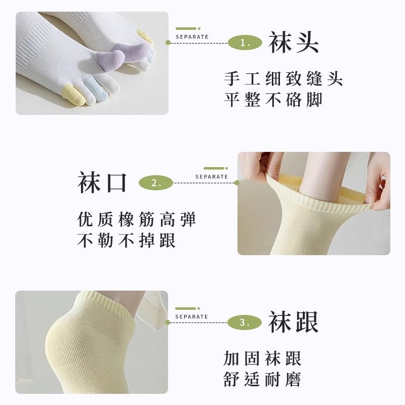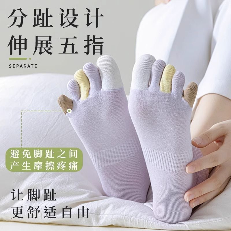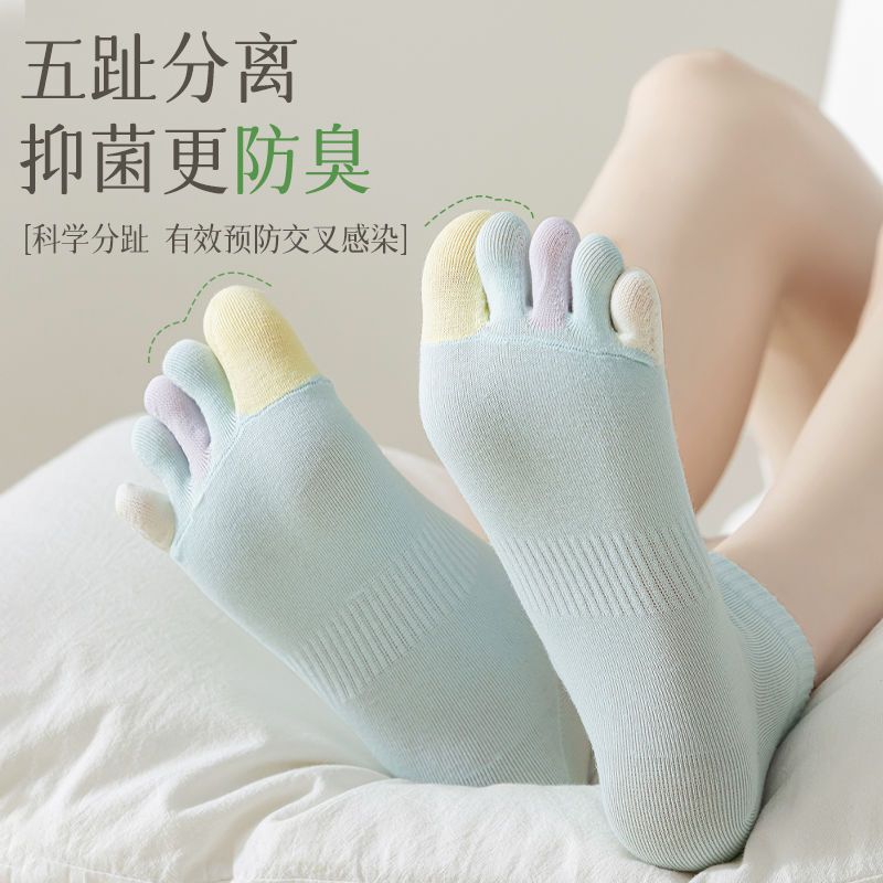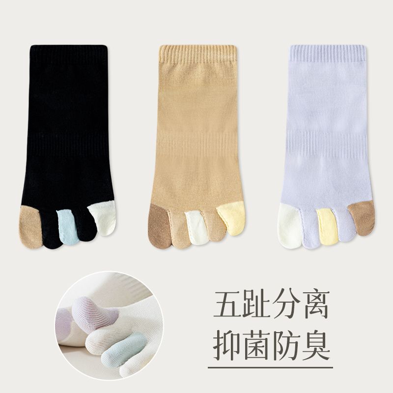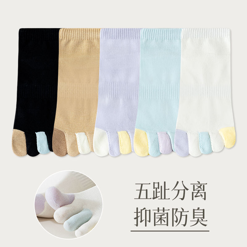 五指袜子女春秋款纯棉透气黑白色分趾脚趾袜防臭吸汗女士短袜夏季