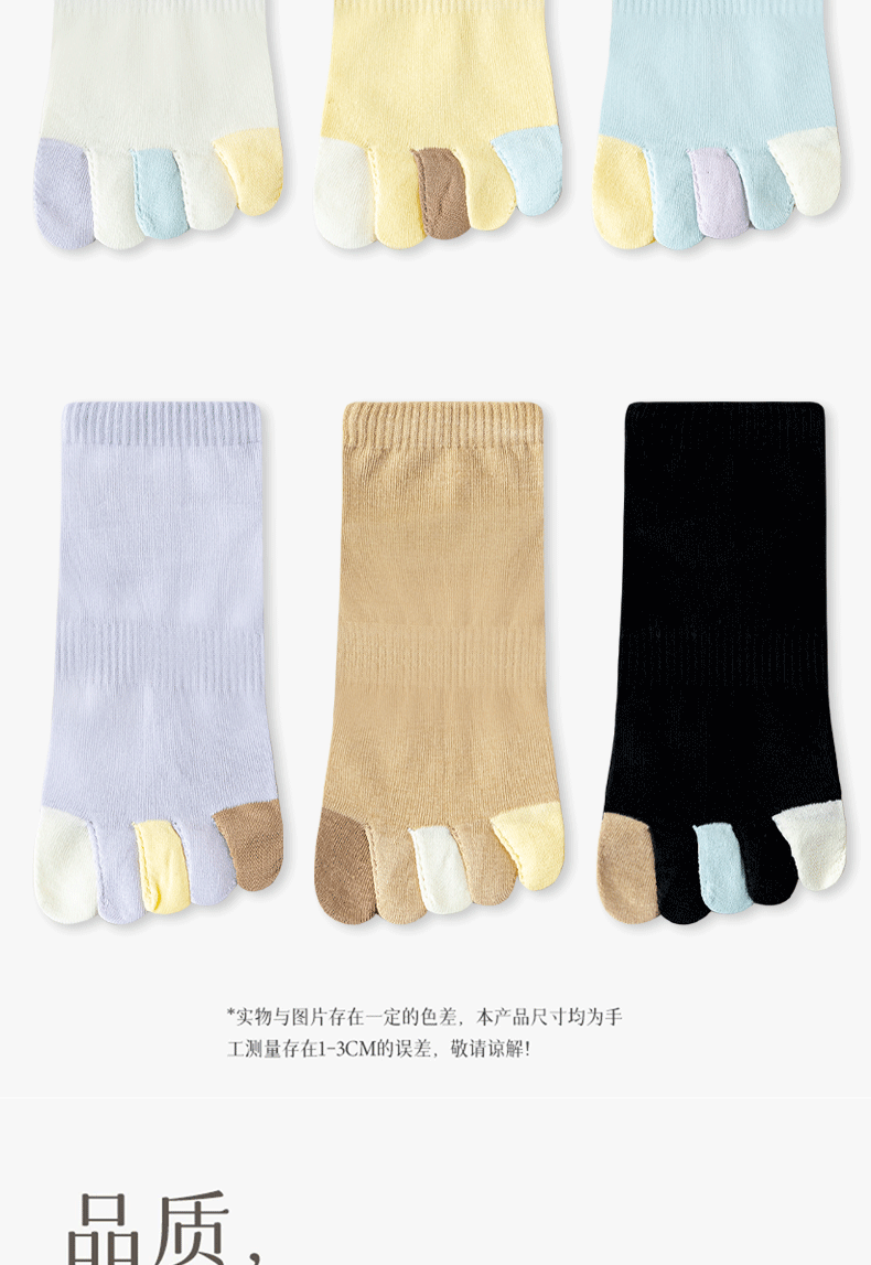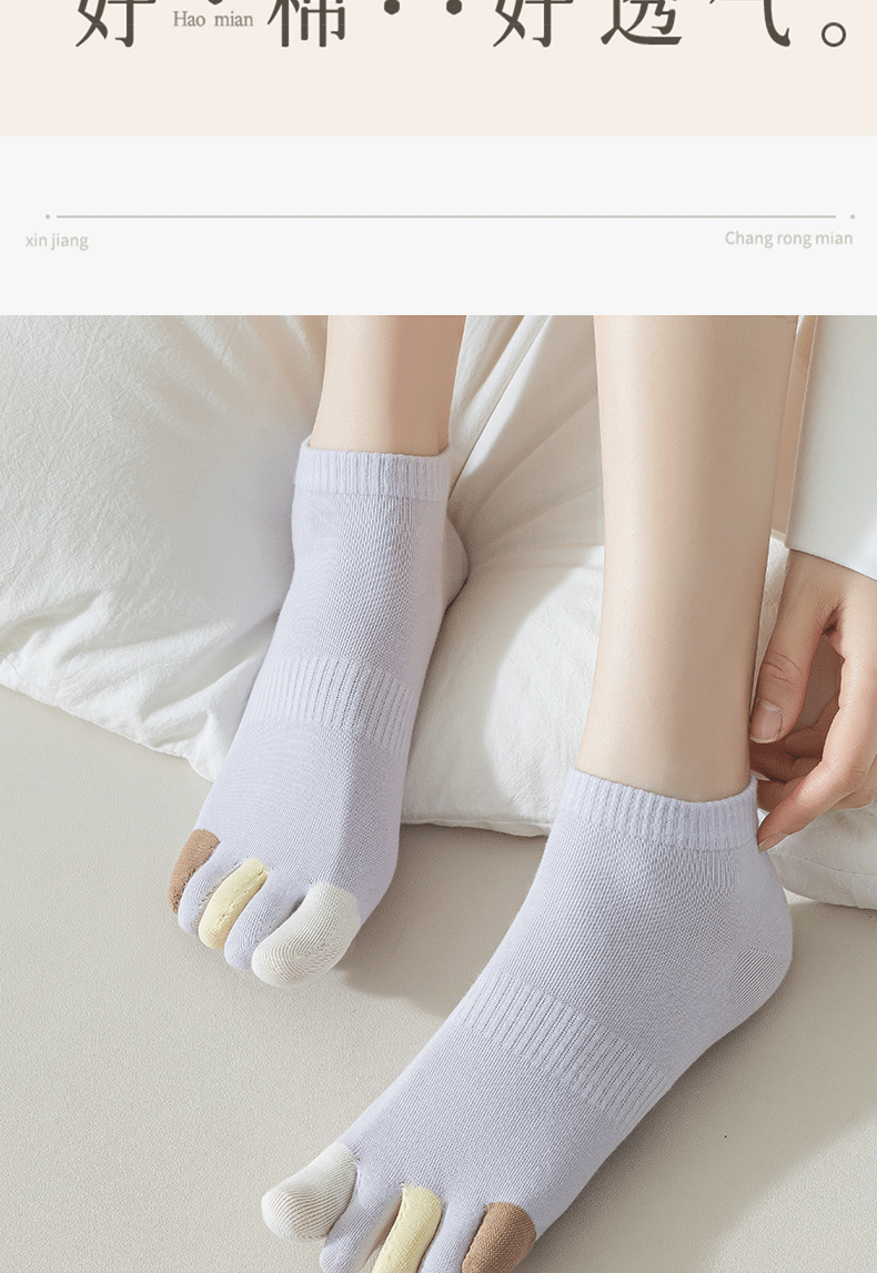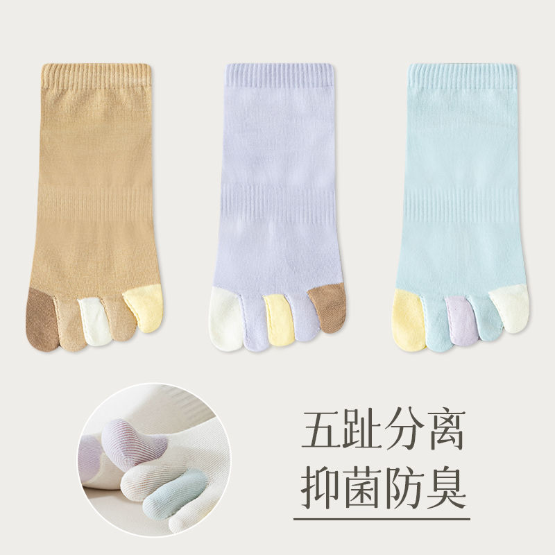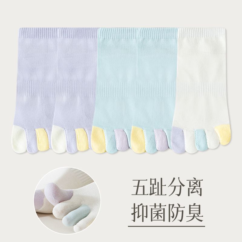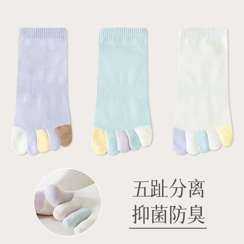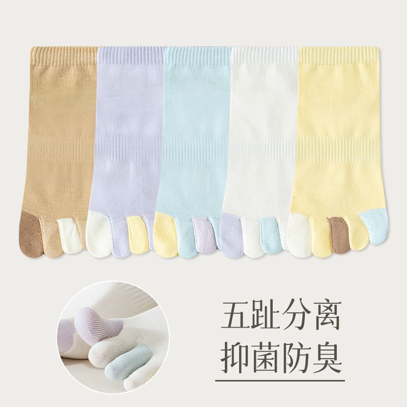 五指袜子女春秋款纯棉透气黑白色分趾脚趾袜防臭吸汗女士短袜夏季