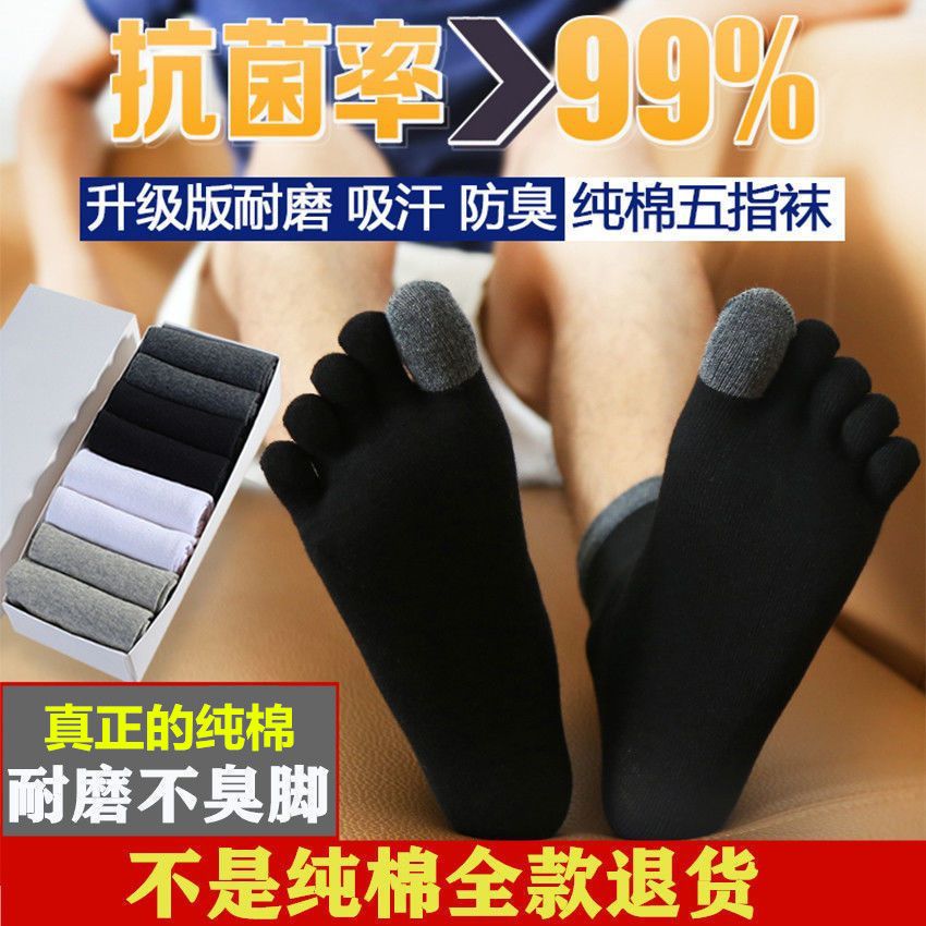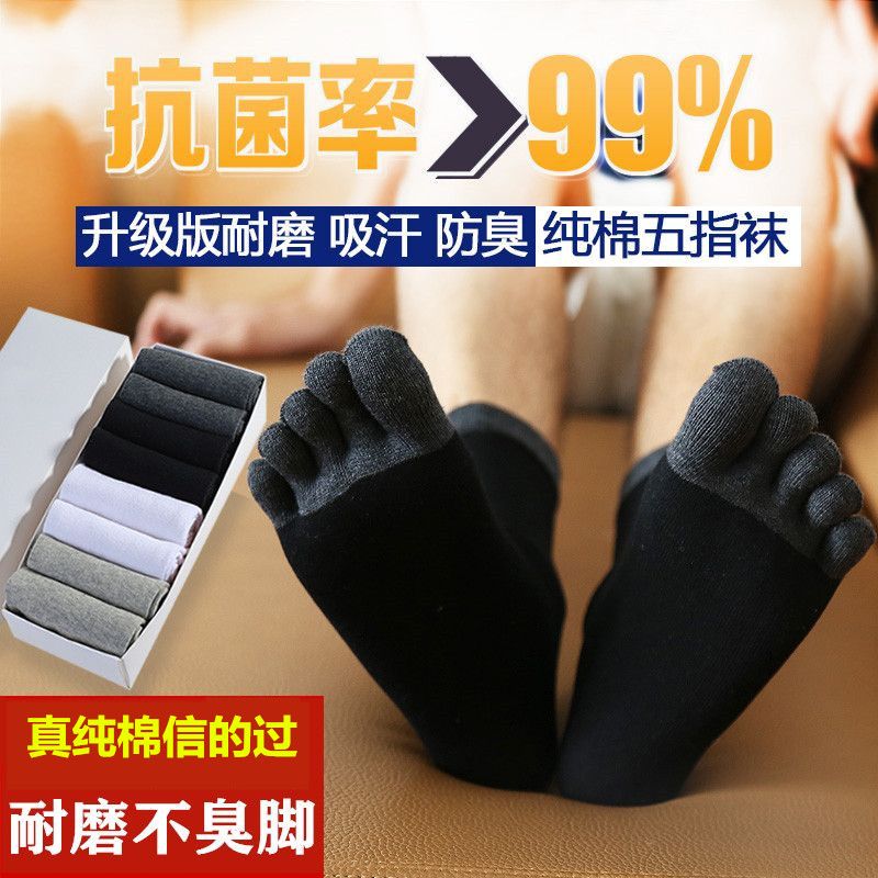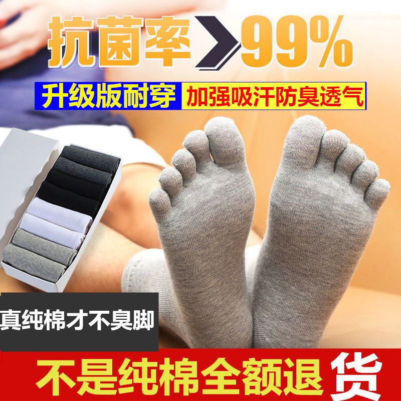 五指袜男纯棉防臭吸汗中筒全棉分趾袜脚趾袜五趾袜男春夏秋冬四季