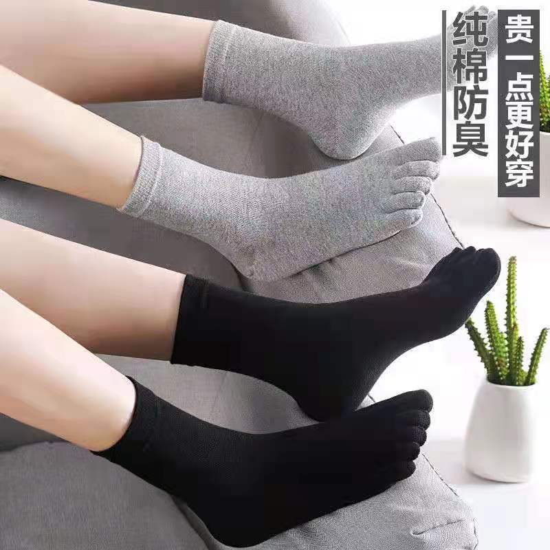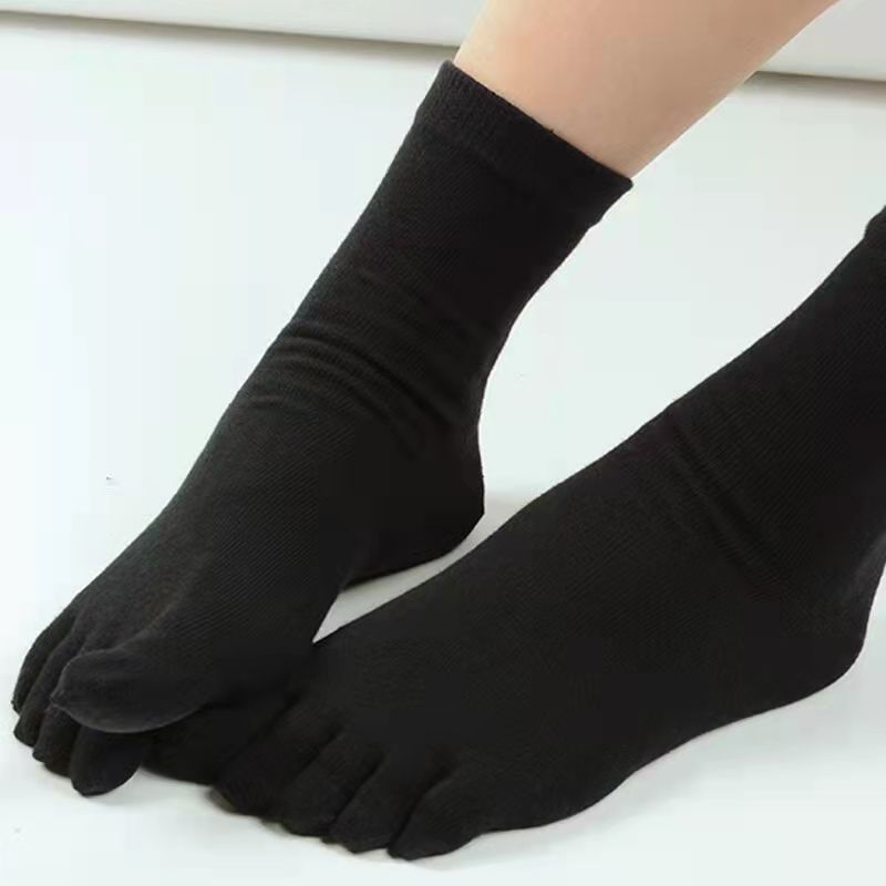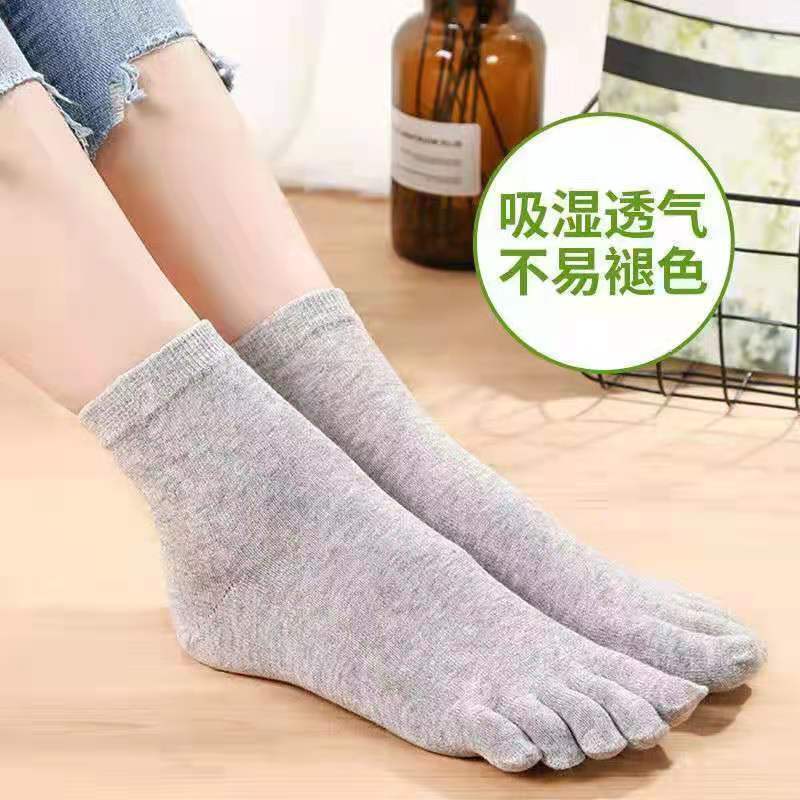 五指袜女纯色棉质春秋冬中筒防臭吸汗分指简约纯色分趾瑜伽五趾袜