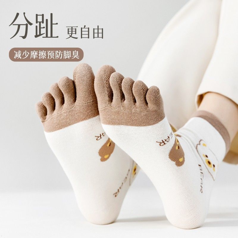 | [4 pairs of cotton] cartoon bear toe socks-4 pack(【纯棉4双】卡通款小熊五指袜-组合4) | USD $3.6 | 999999 piece available |