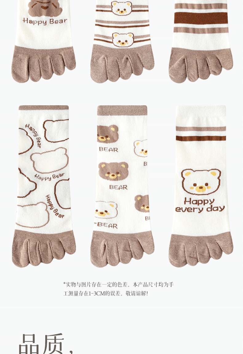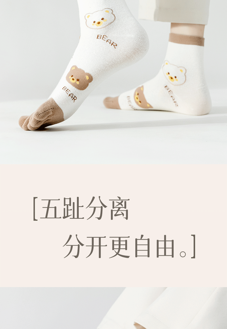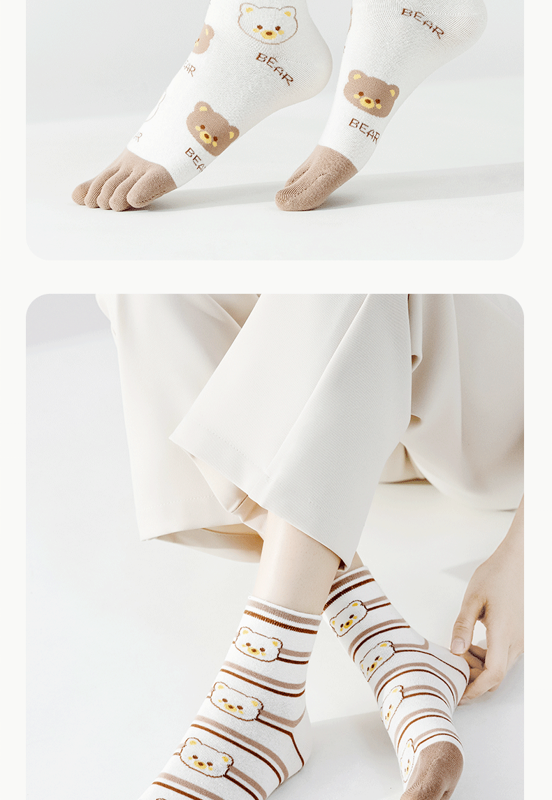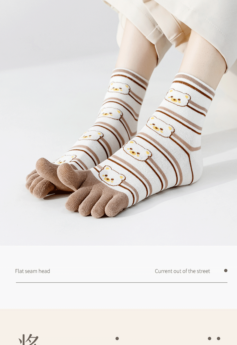 | [6 pairs of pure cotton] cartoon bear toe socks-combination 1(【纯棉6双】卡通款小熊五指袜-组合1) | USD $5.41 | 999999 piece available |