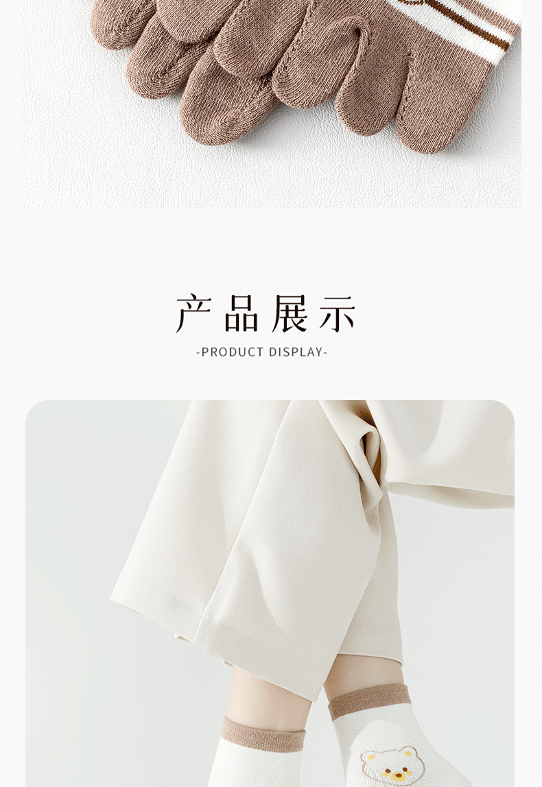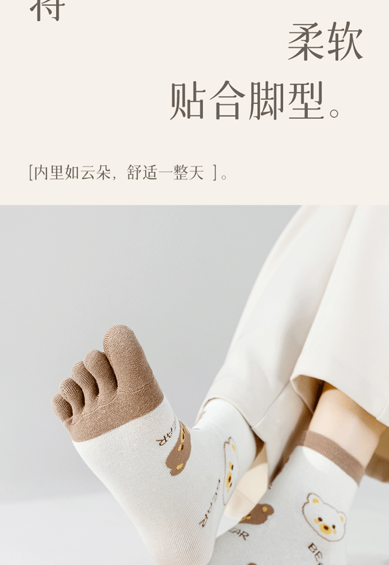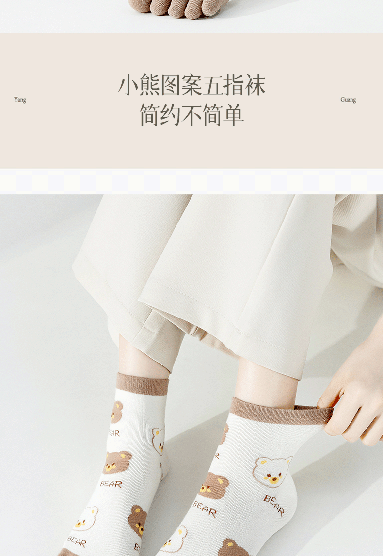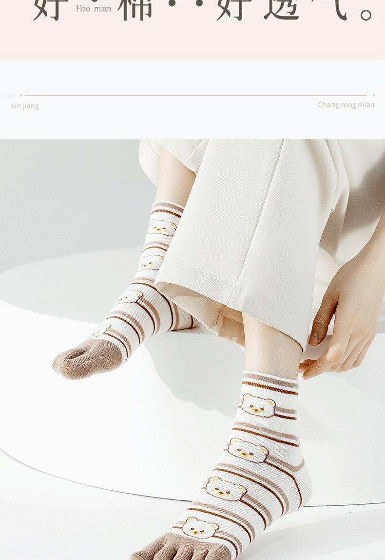 | [6 pairs of pure cotton] cartoon bear toe socks-combination 1(【纯棉6双】卡通款小熊五指袜-组合1) | USD $5.41 | 999999 piece available |