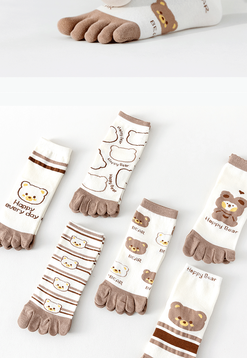 | [6 pairs of pure cotton] cartoon bear toe socks-combination 3(【纯棉6双】卡通款小熊五指袜-组合3) | USD $5.41 | 999999 piece available |