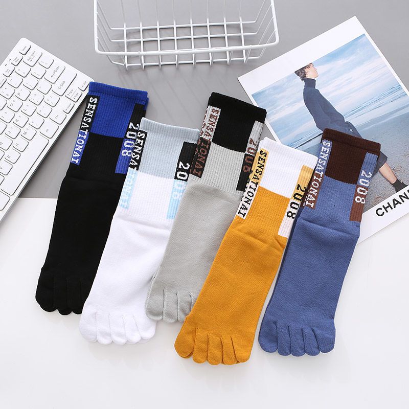 五指袜男纯棉秋冬季厚款高筒袜商务分指袜子男吸汗防臭透气运动袜