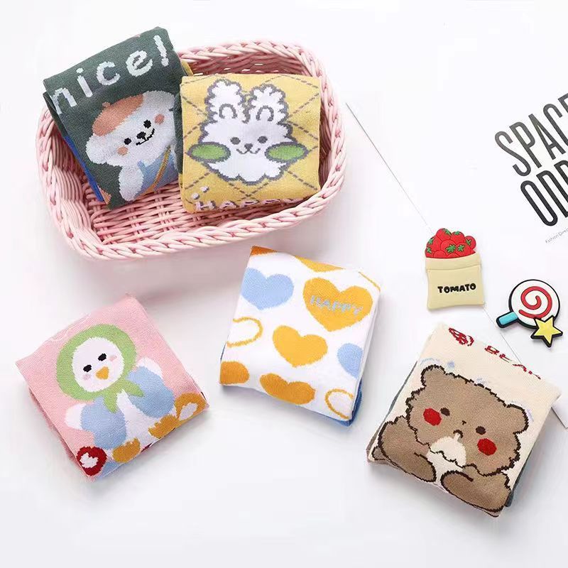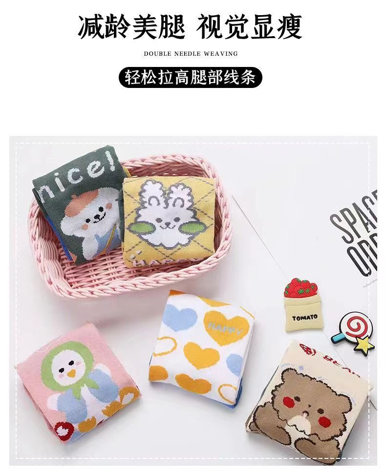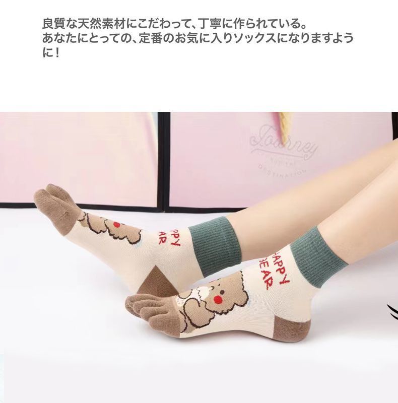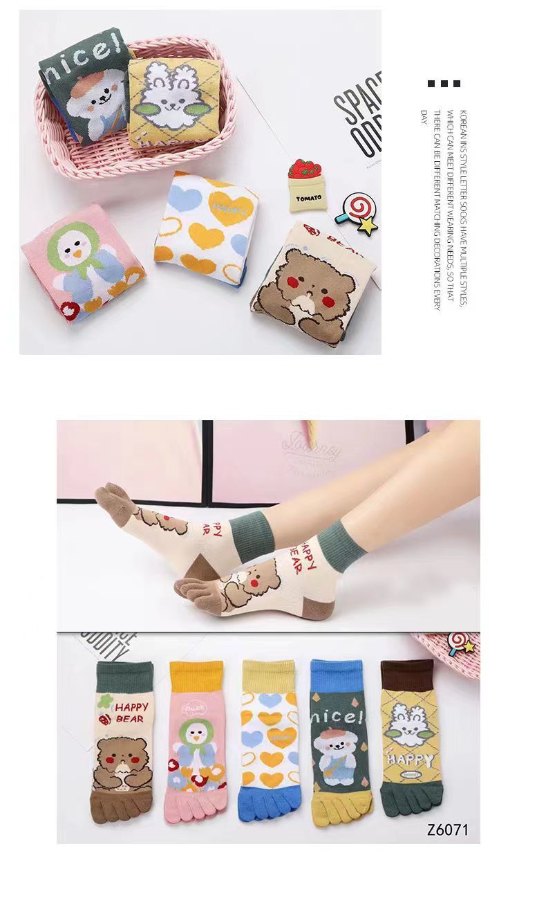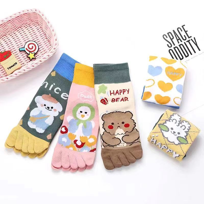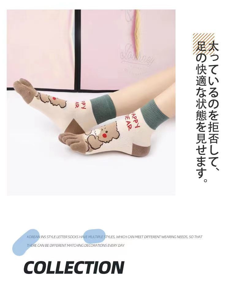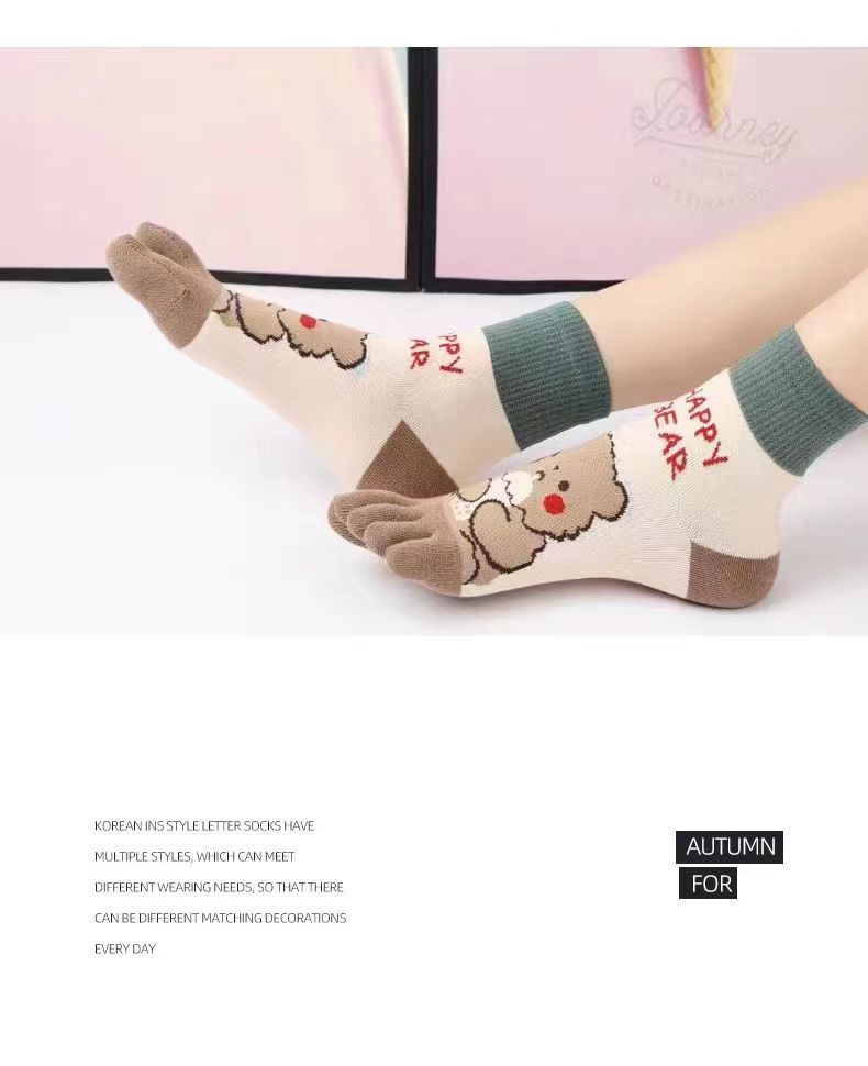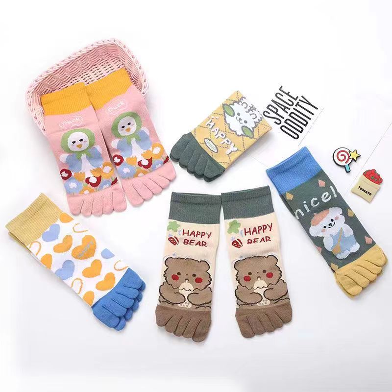 五指袜女秋冬款100%纯棉中筒袜子网红卡通可爱透气吸汗分趾袜子