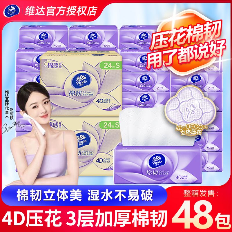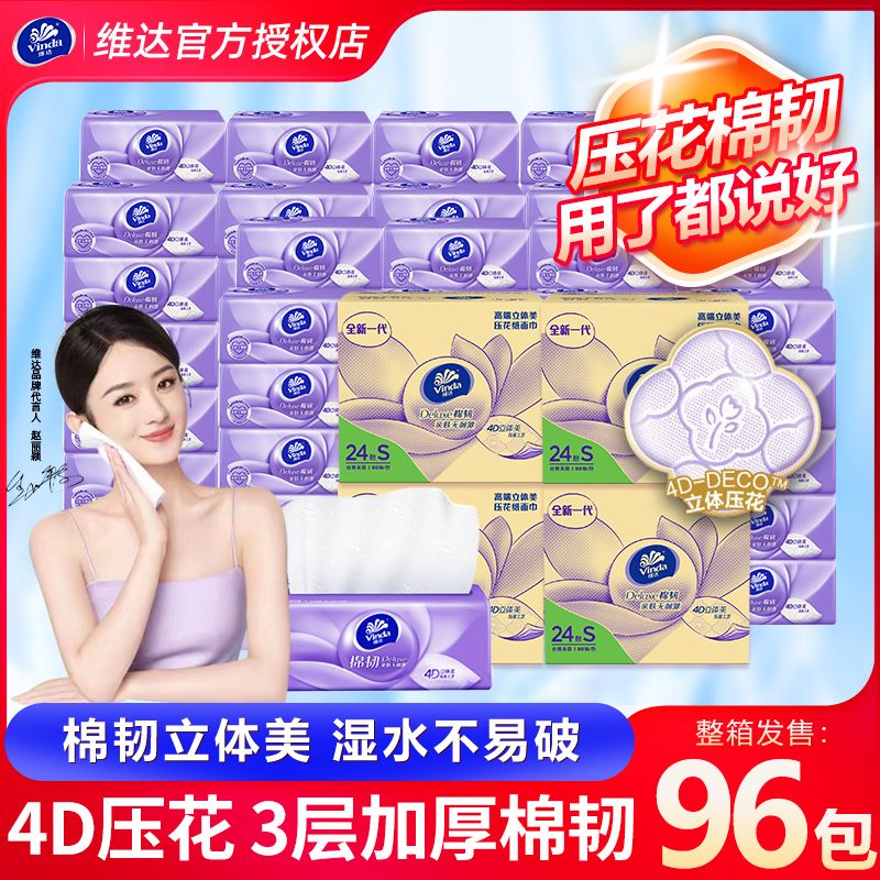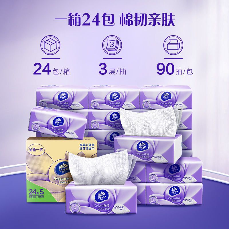 维达抽纸巾3层整箱棉韧抽纸面巾纸卫生餐巾纸实惠装家用纸S码90抽