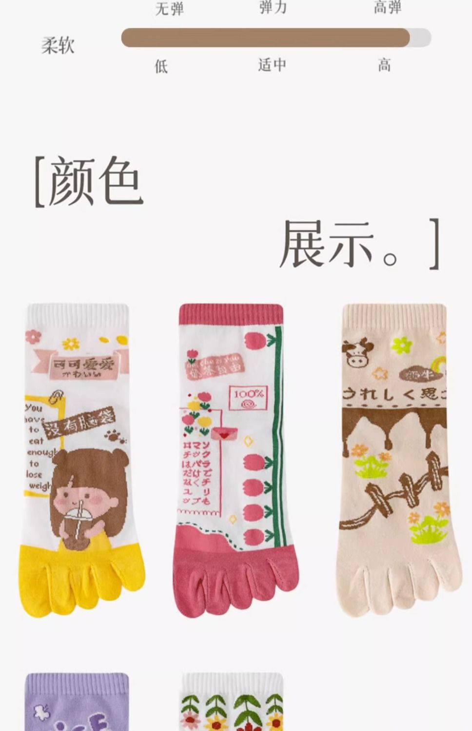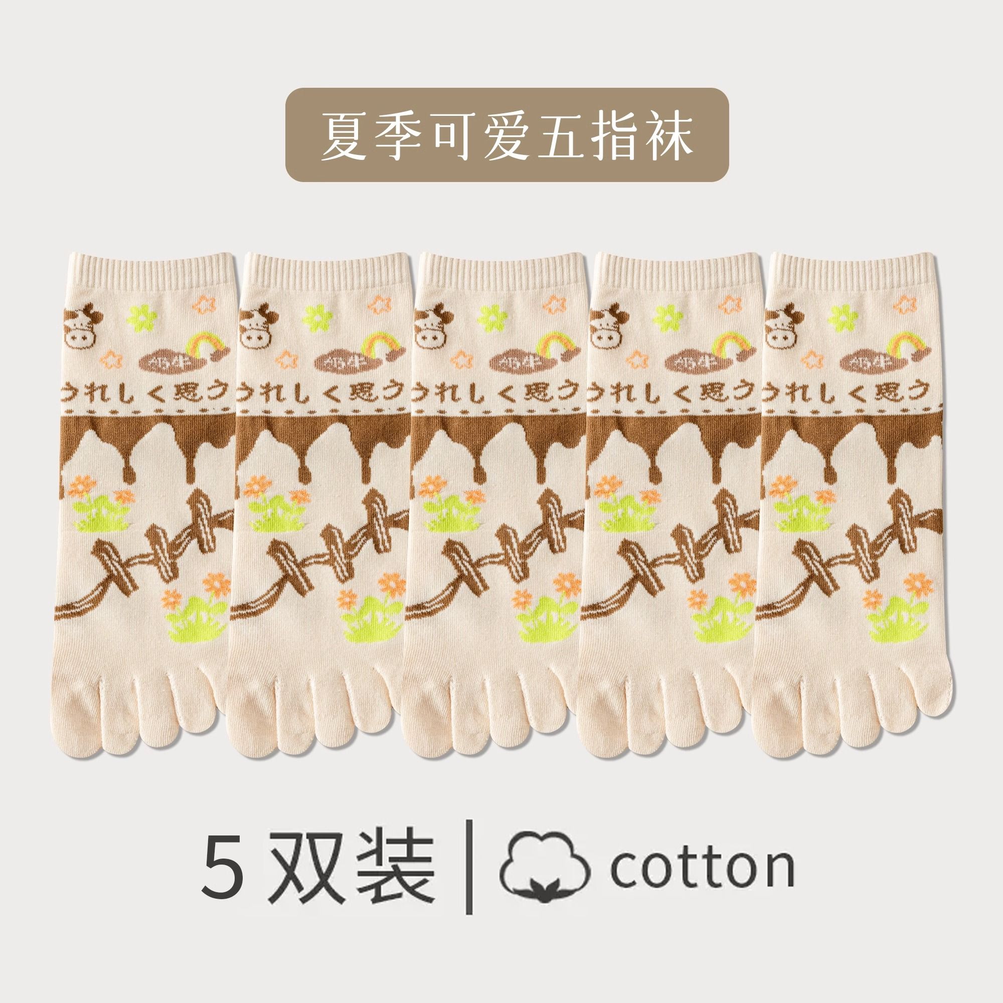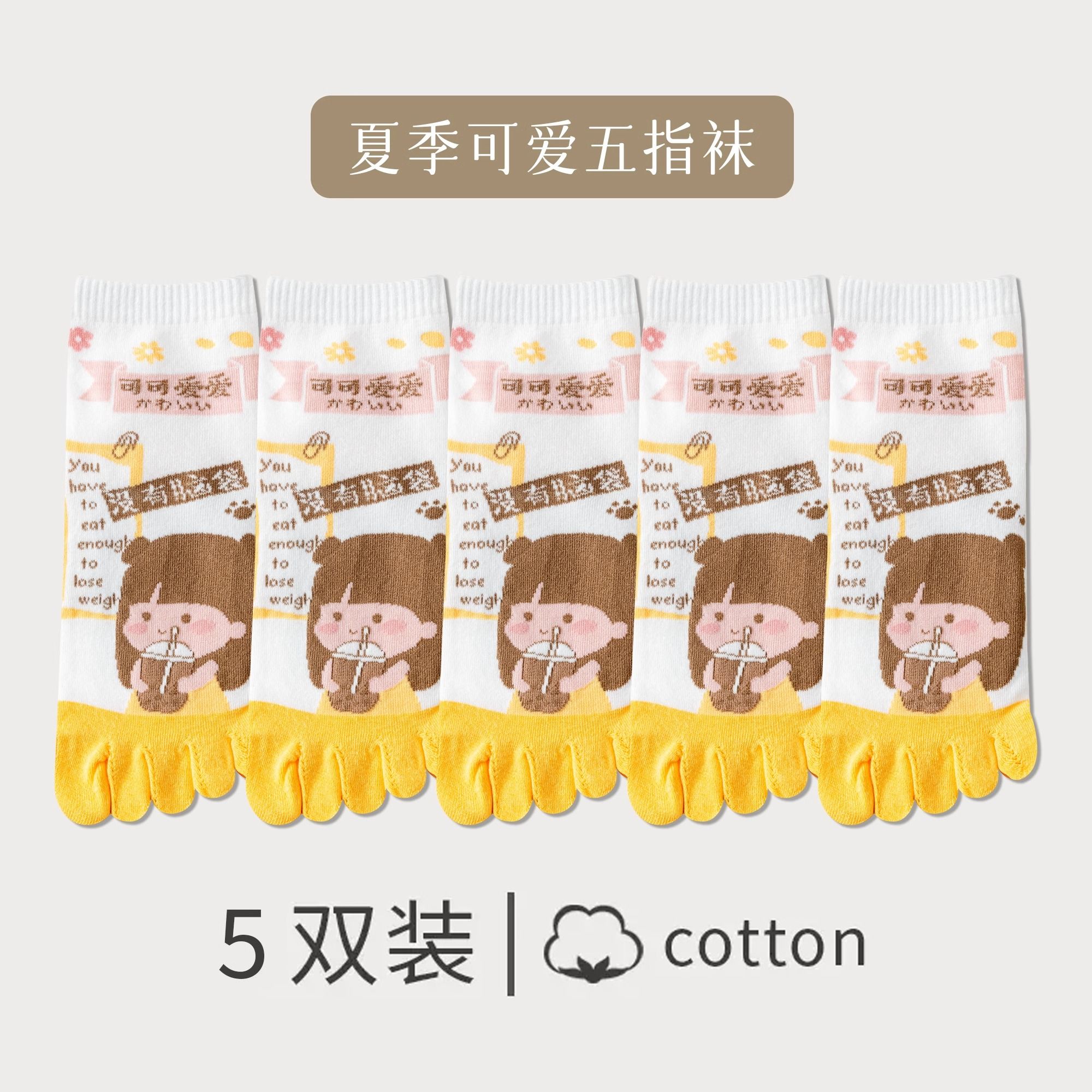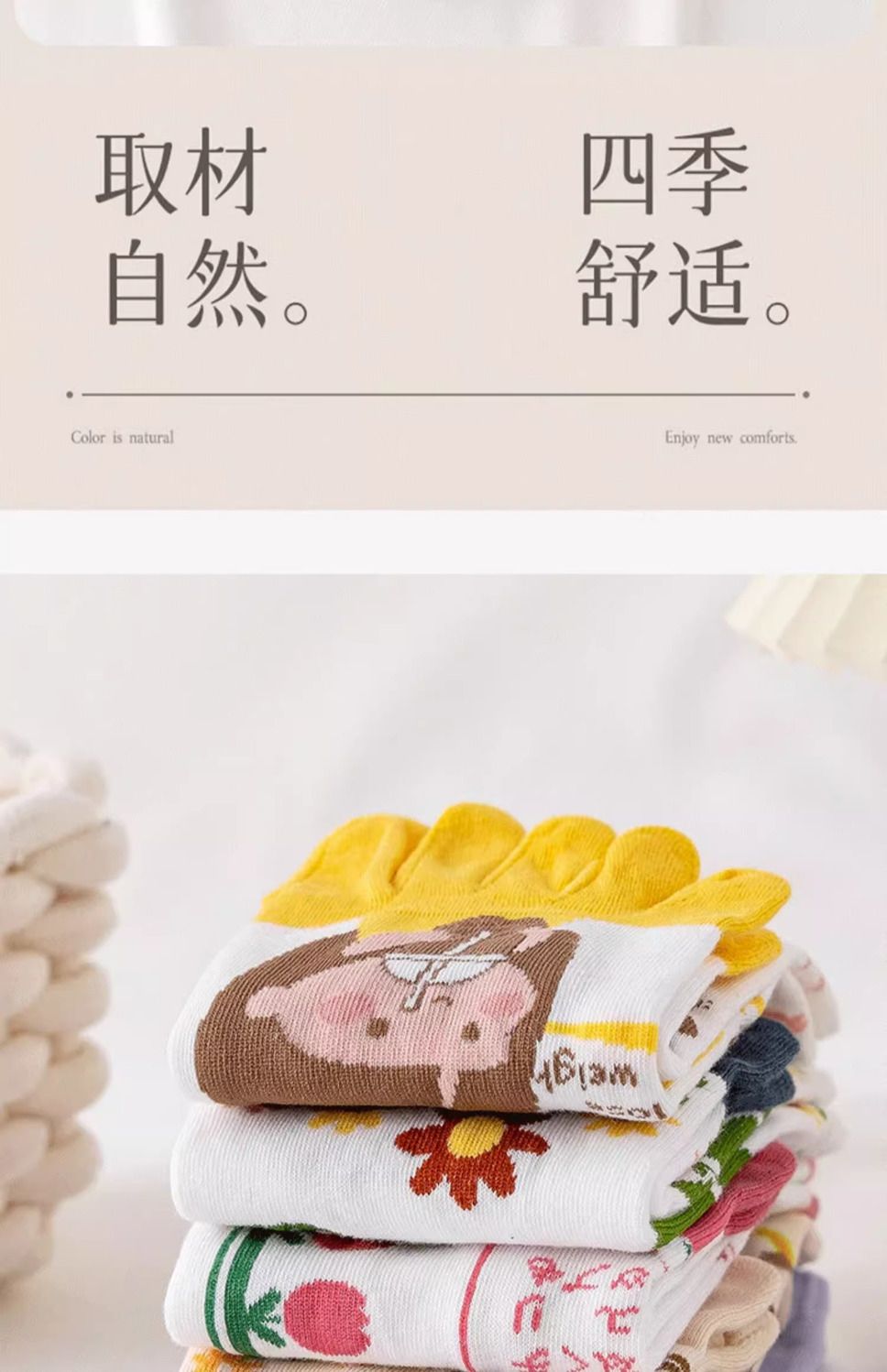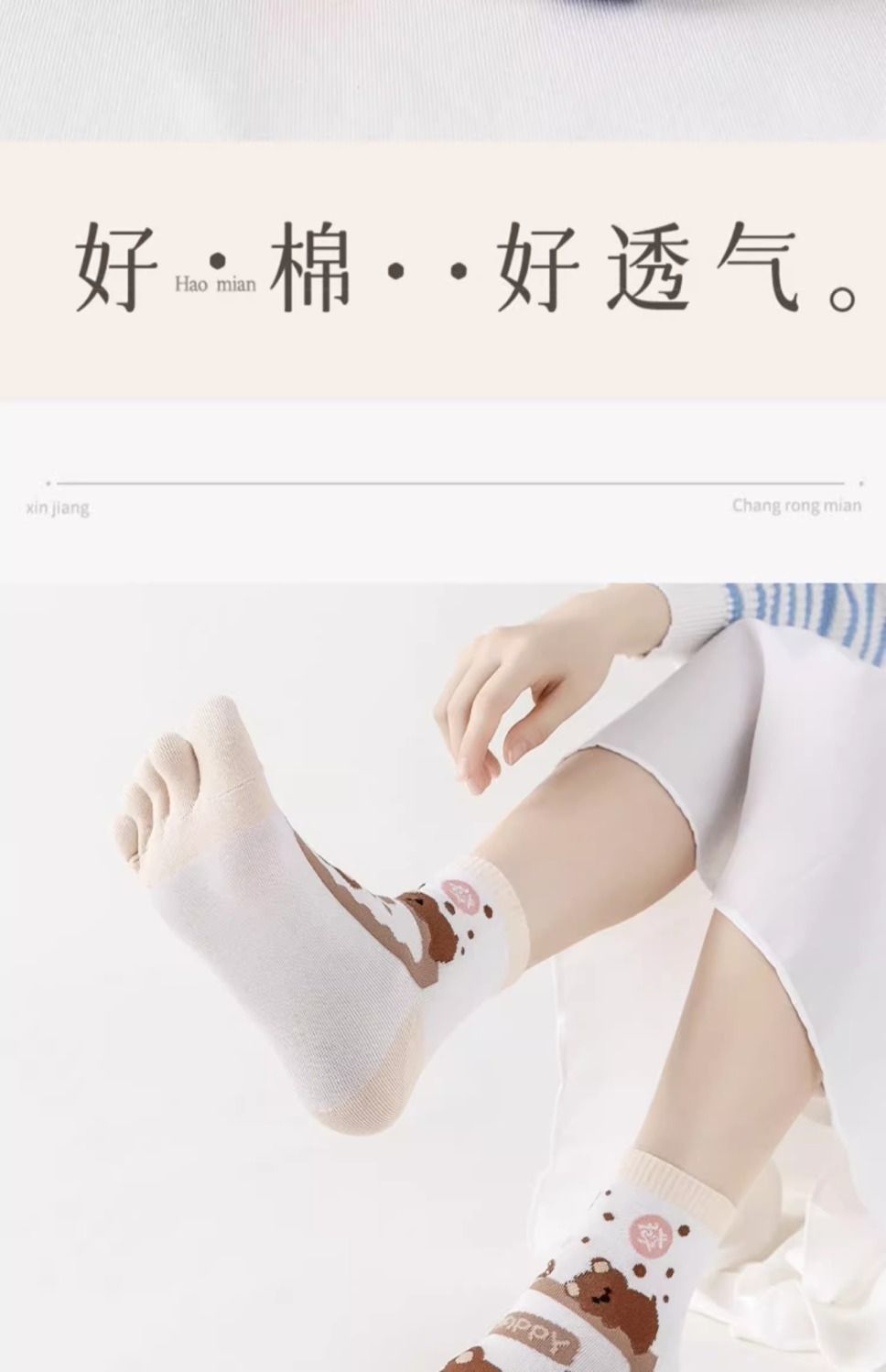 五指袜子女士夏季中筒袜纯棉防臭卡通吸汗透气脚趾袜夏天分趾