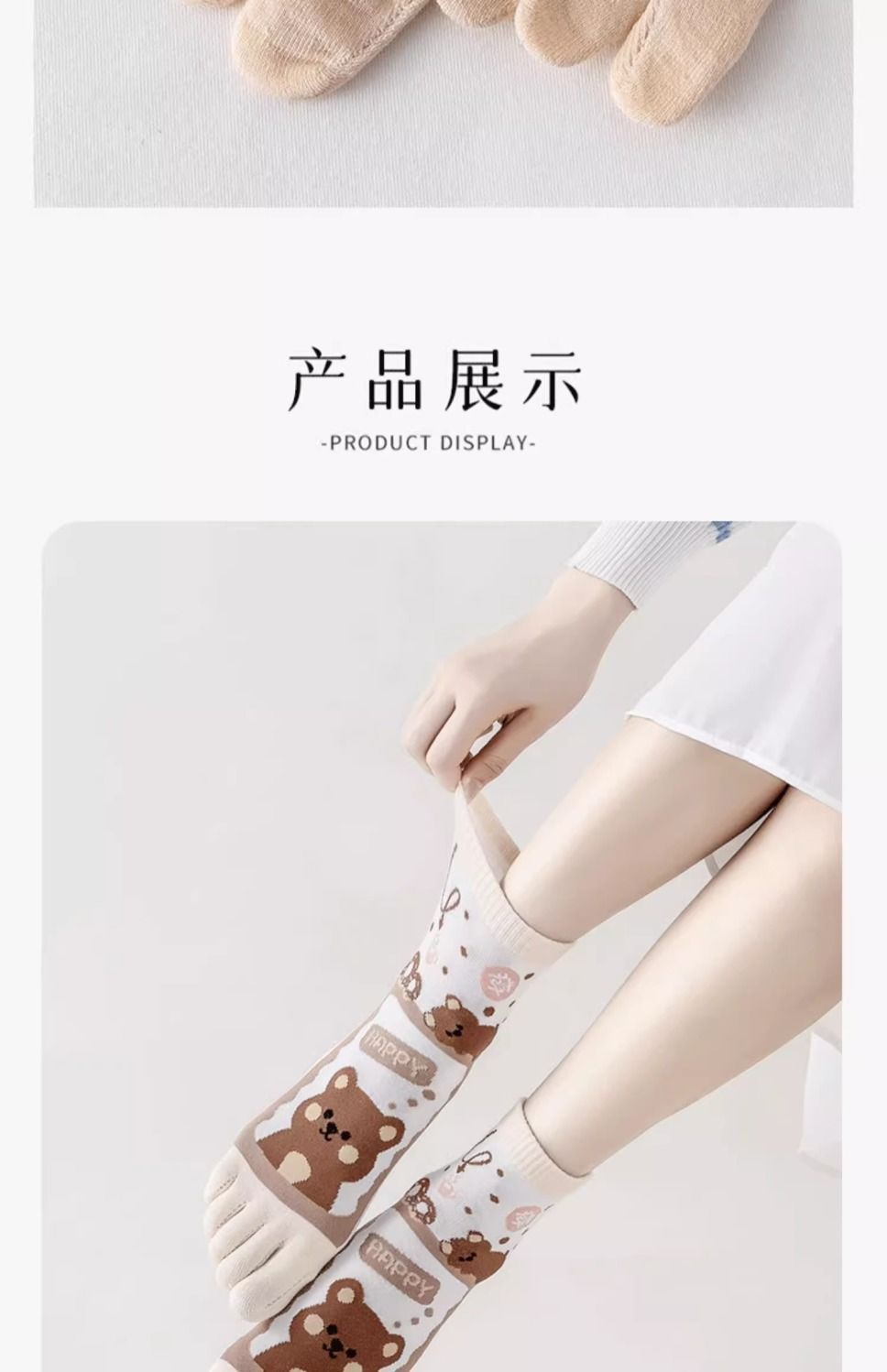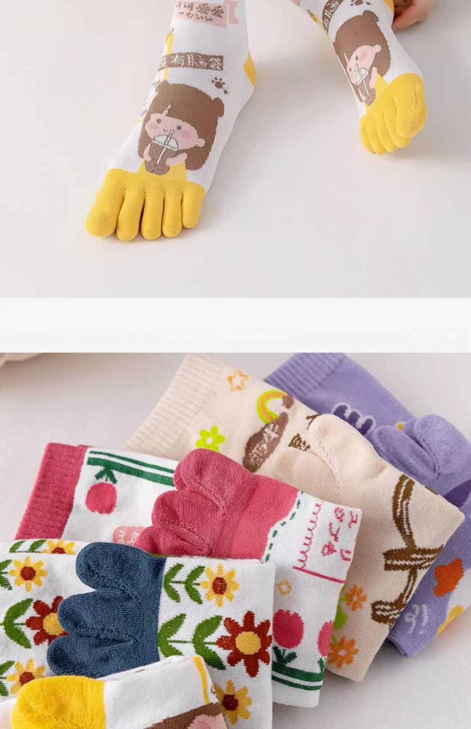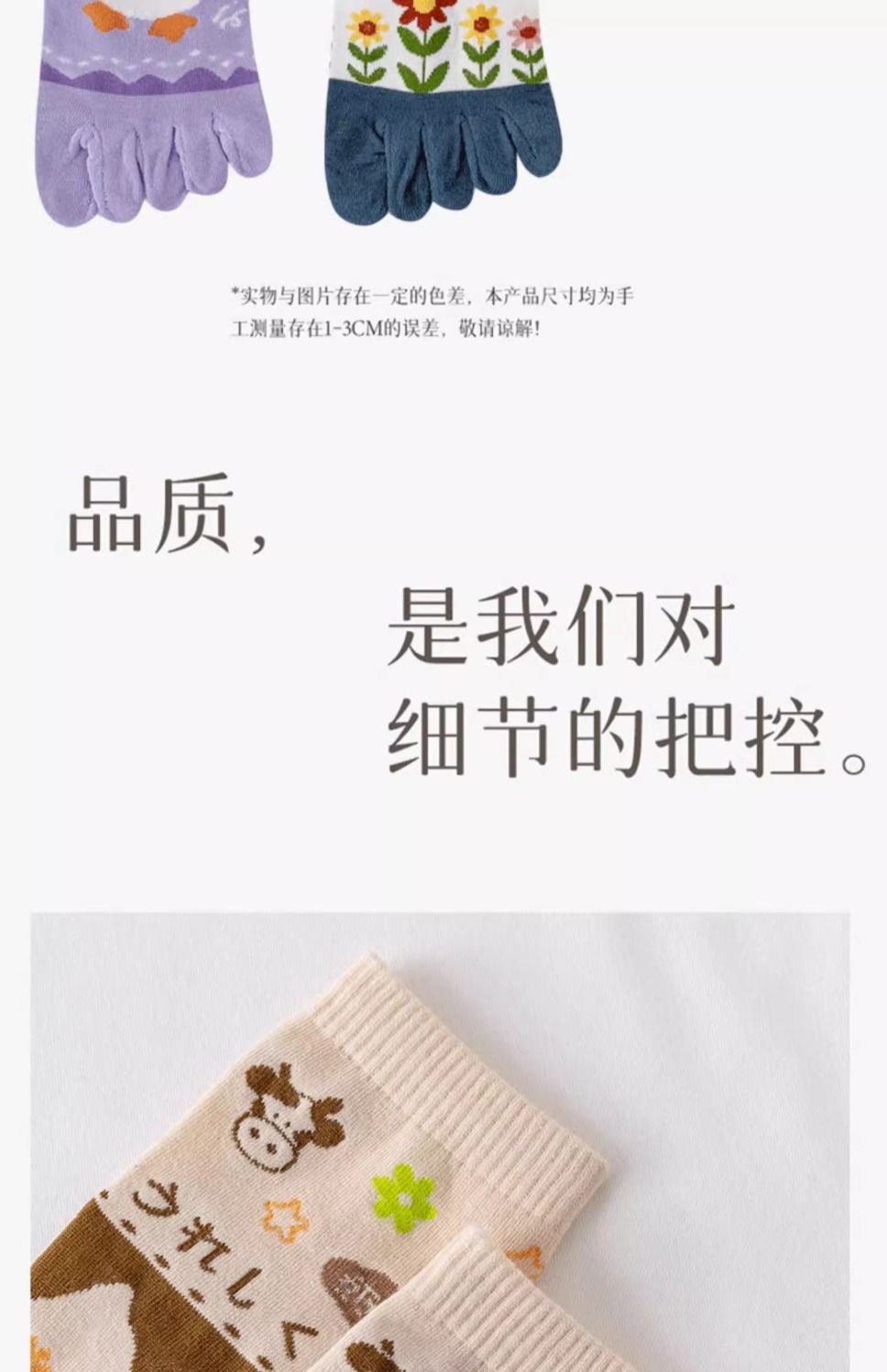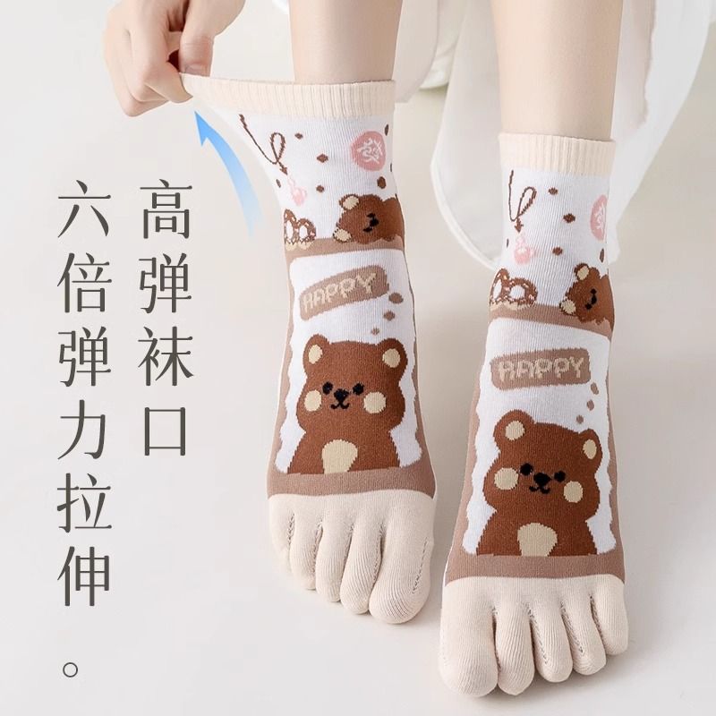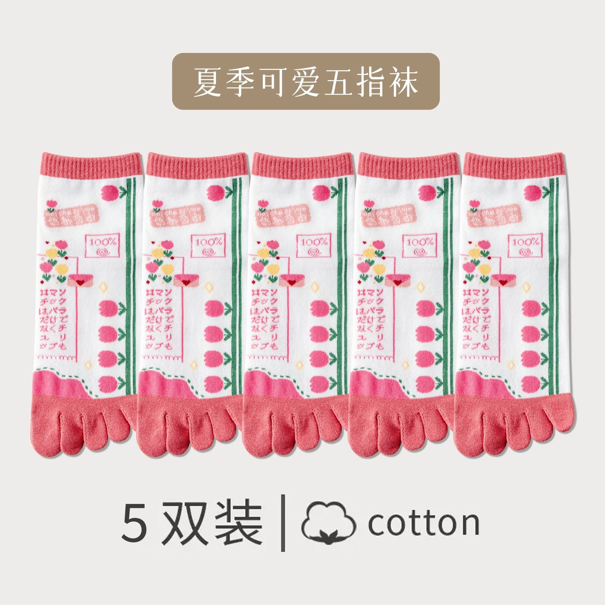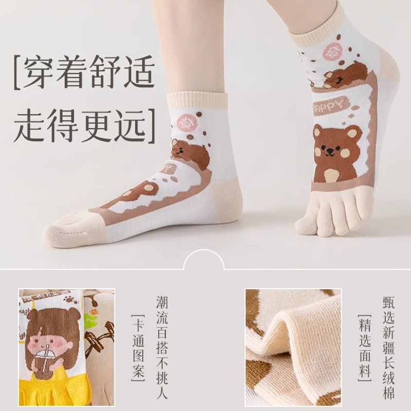 五指袜子女士夏季中筒袜纯棉防臭卡通吸汗透气脚趾袜夏天分趾