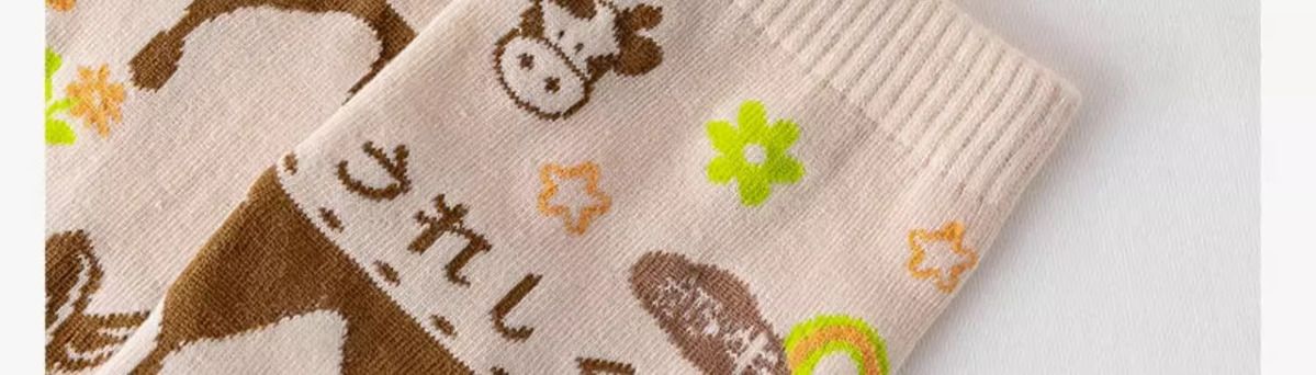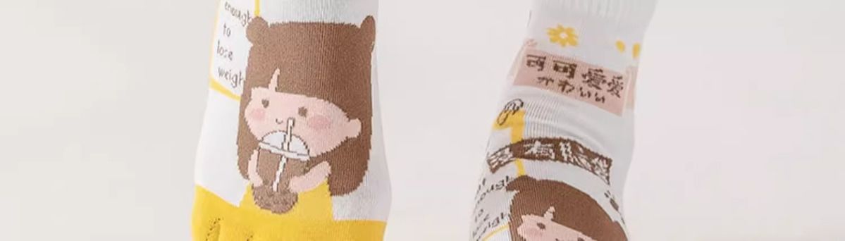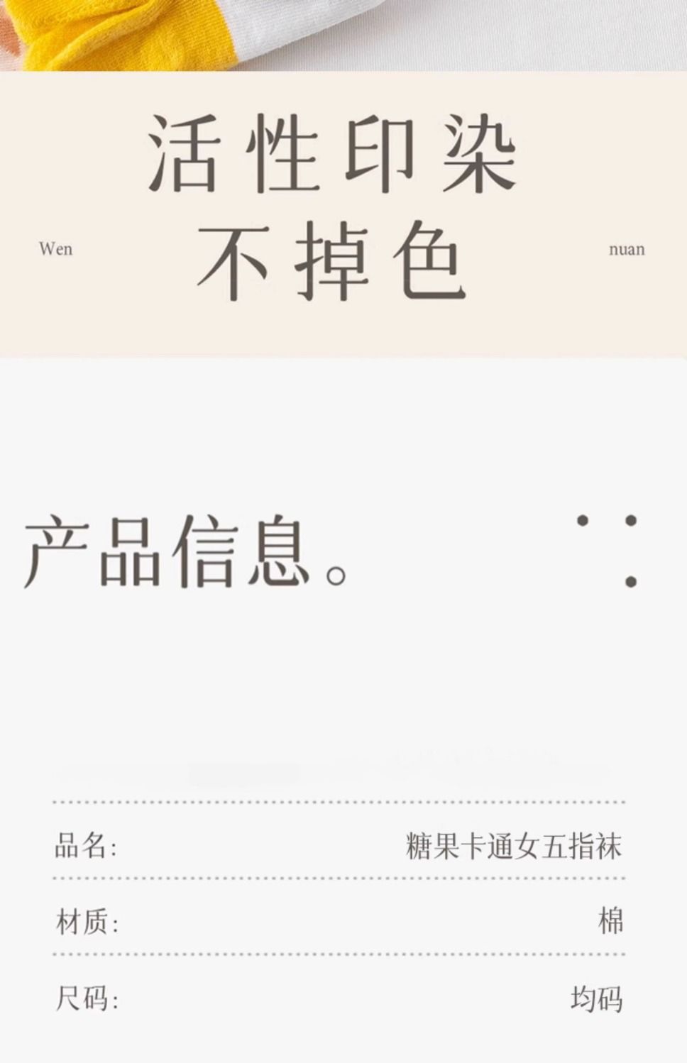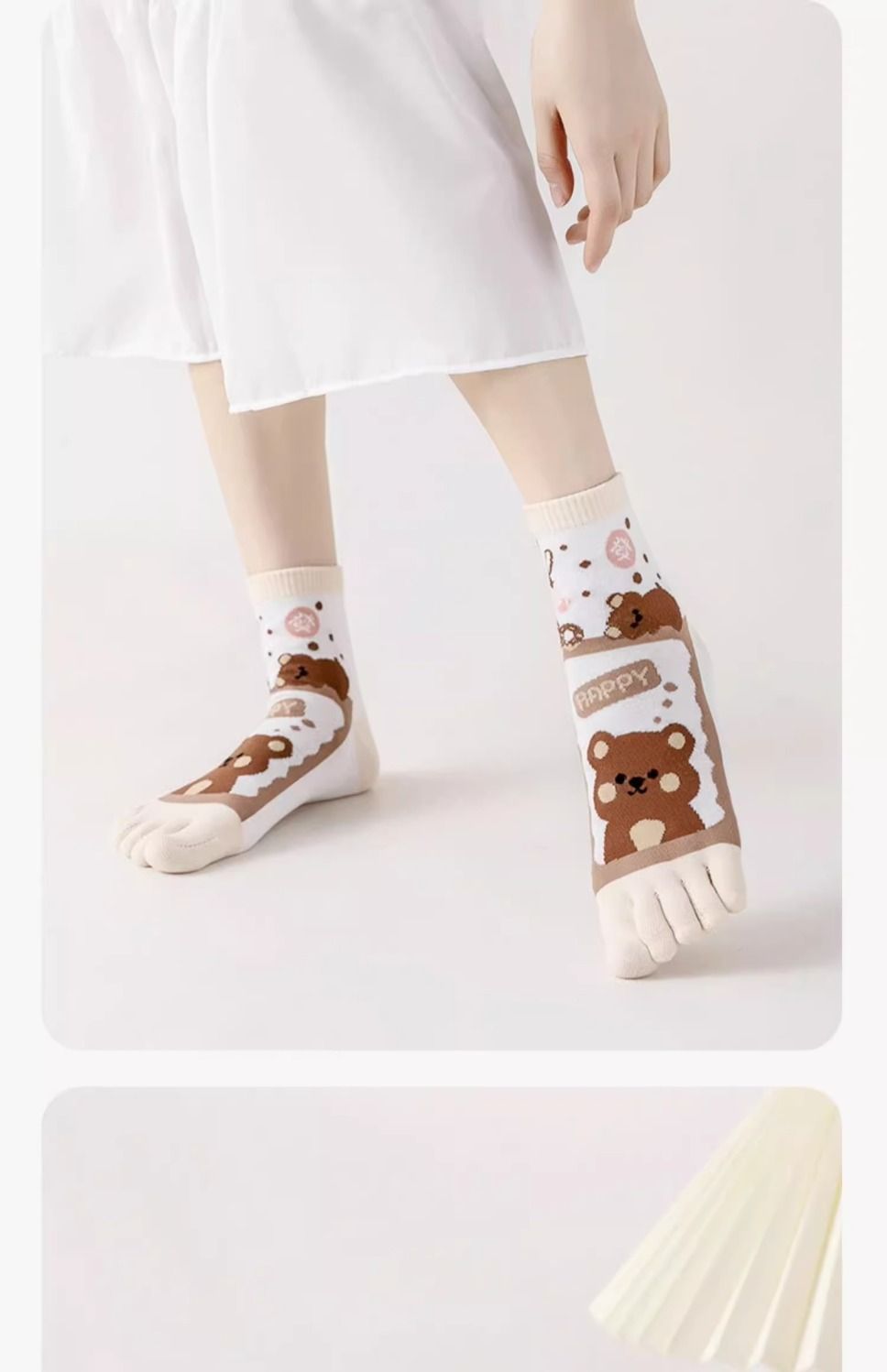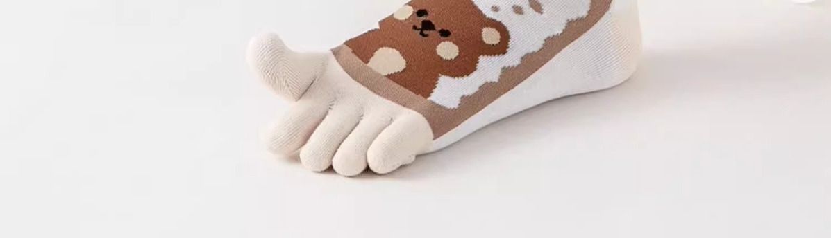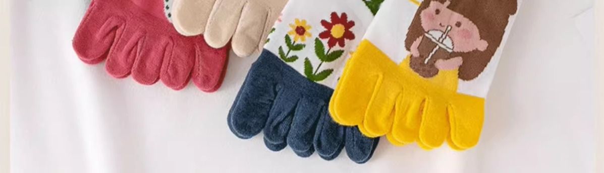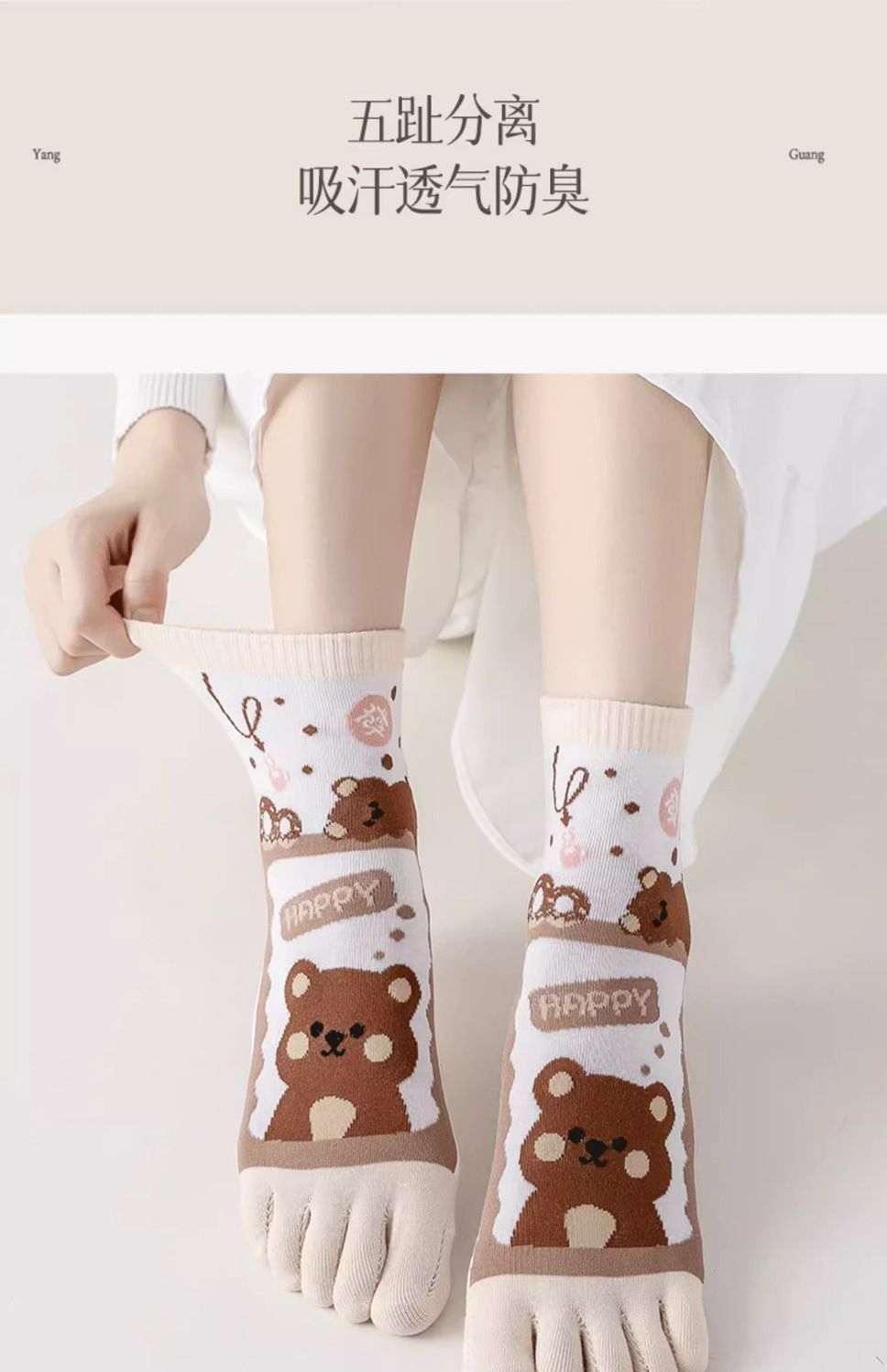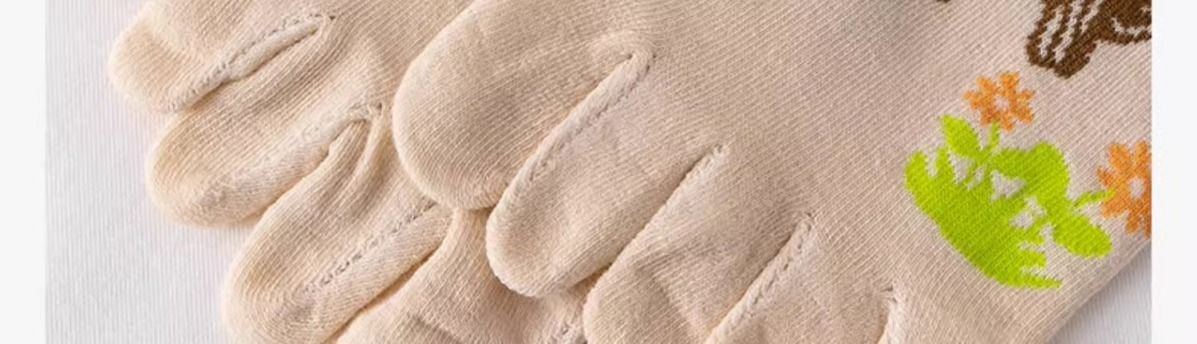 五指袜子女士夏季中筒袜纯棉防臭卡通吸汗透气脚趾袜夏天分趾