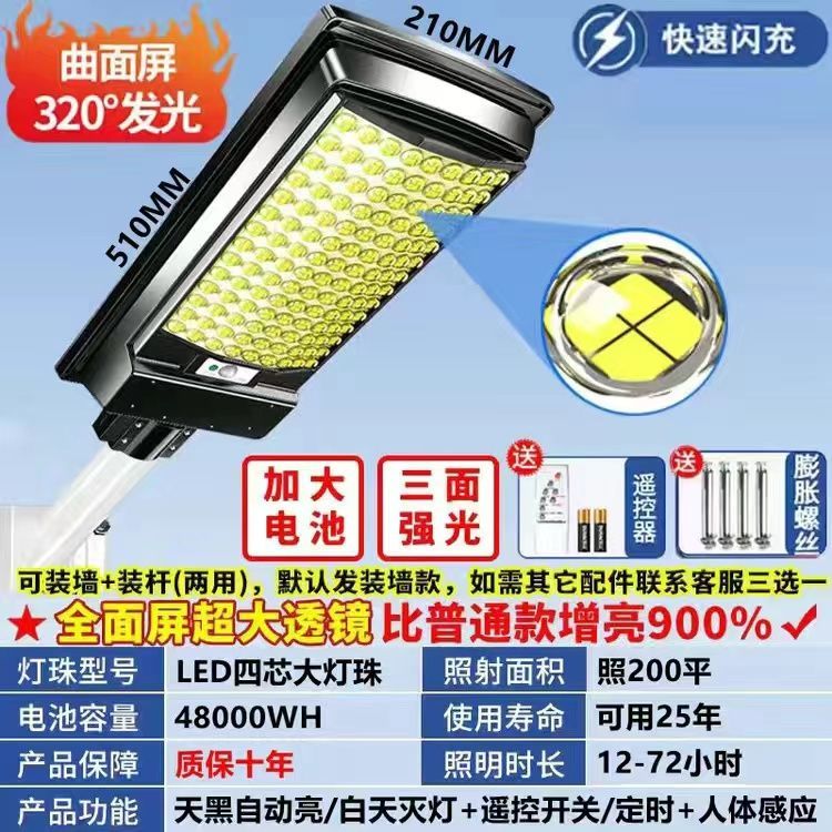 太阳能庭院灯户外一体式太阳能灯防水超亮农村照明灯家用人体感应