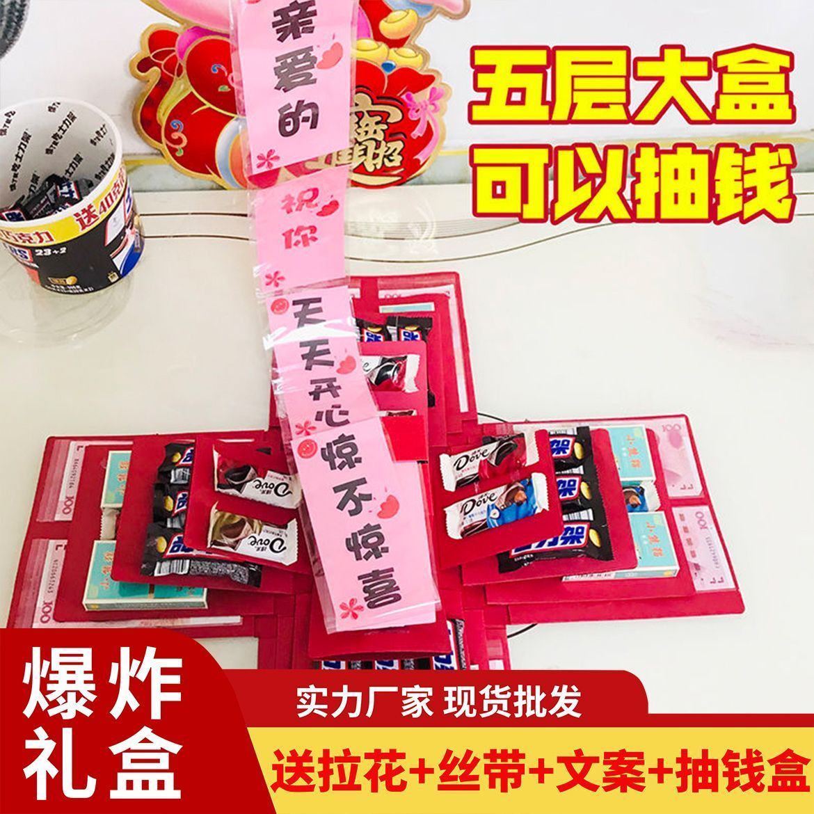 五层抽钱文案惊喜爆炸盒子送老公男女友闺蜜61新年情人节生日礼物