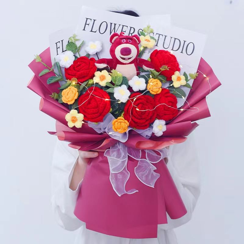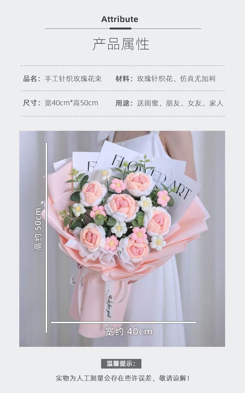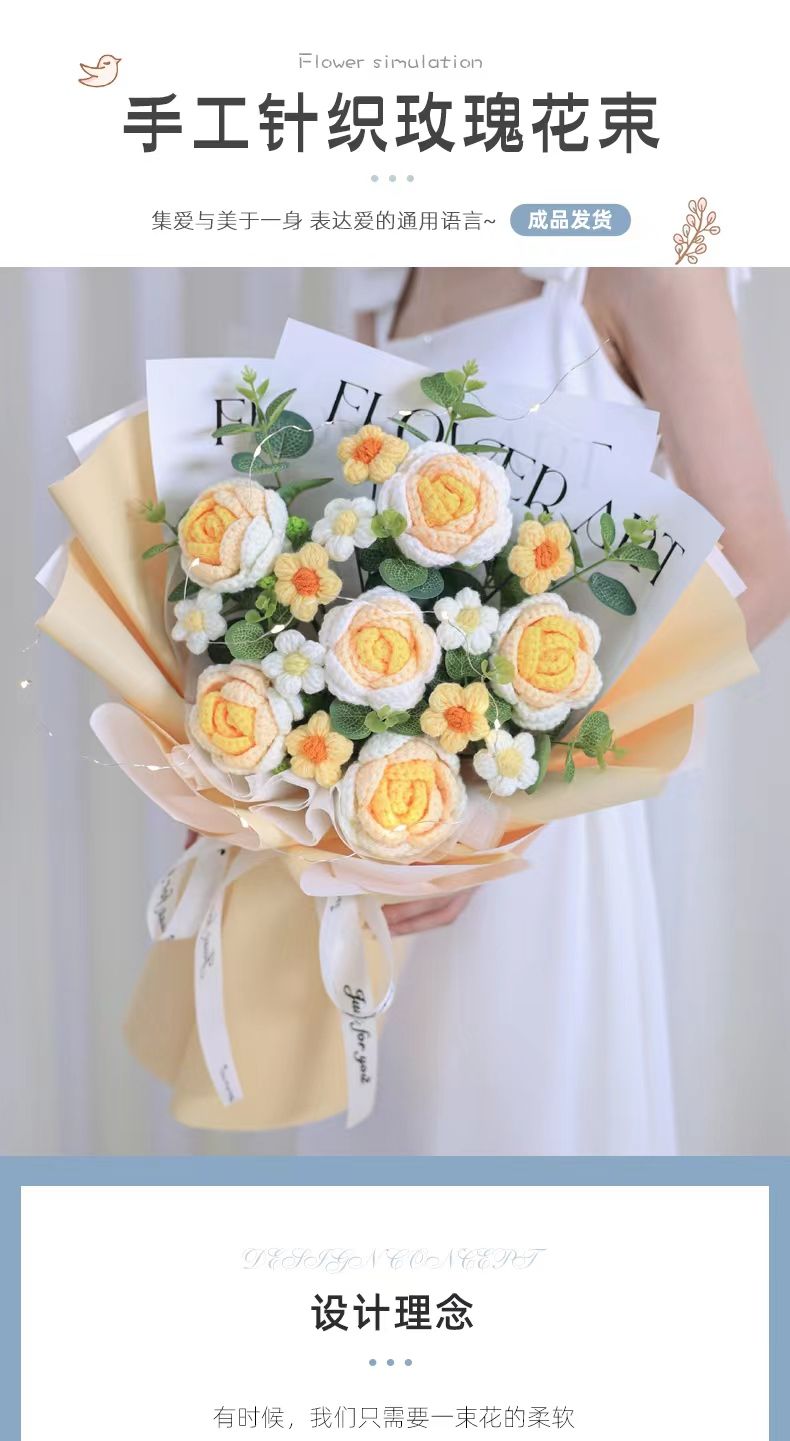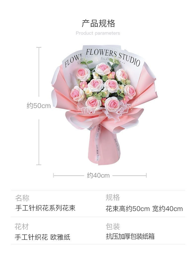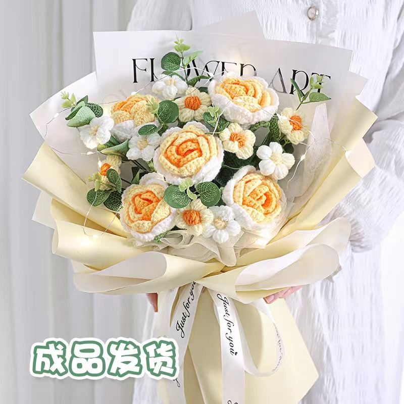 针织花束成品玫瑰手工编织送女友闺蜜生日礼物送女生情人节妇女节
