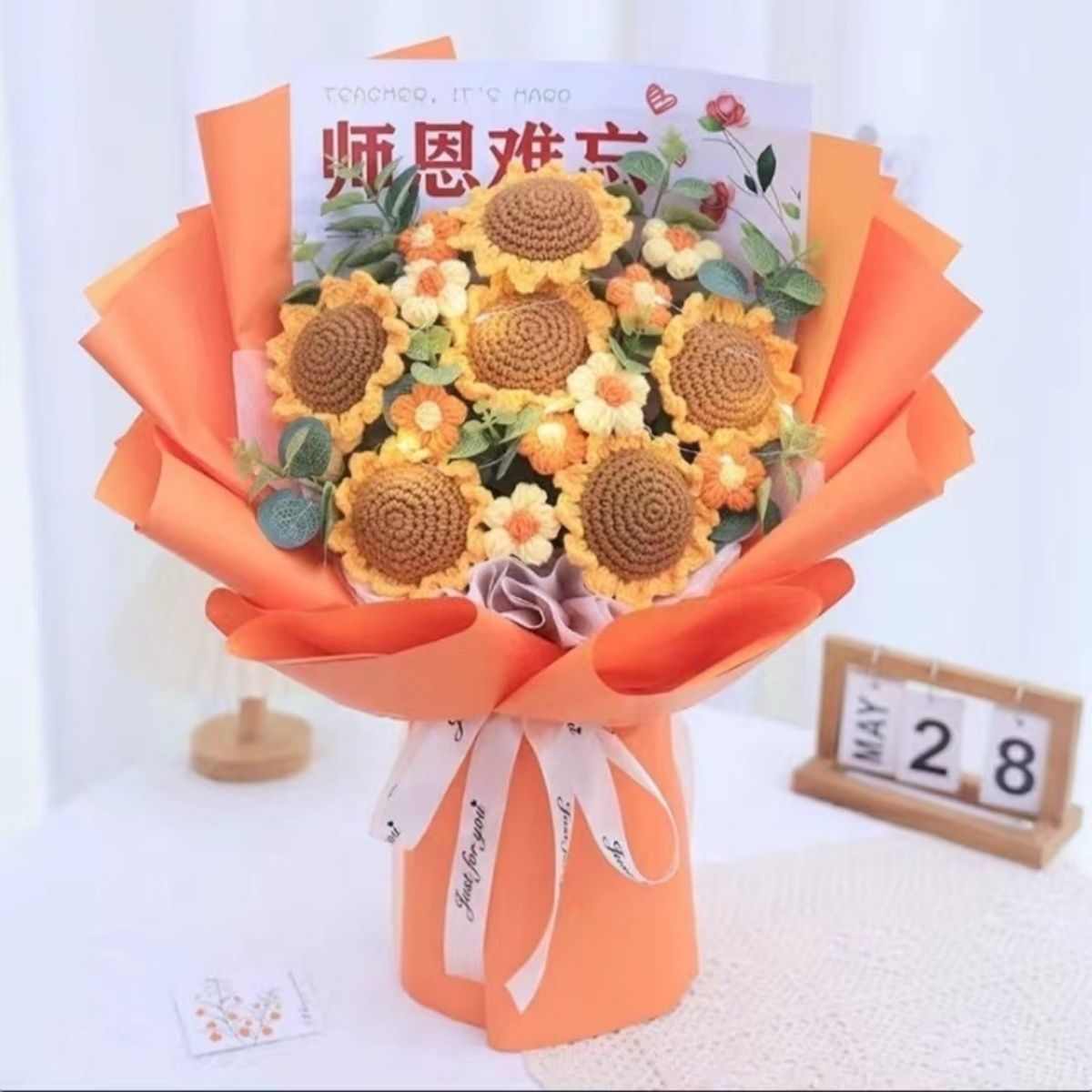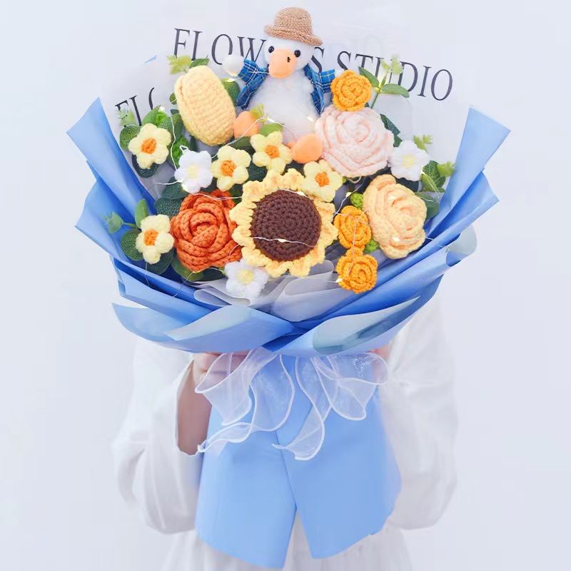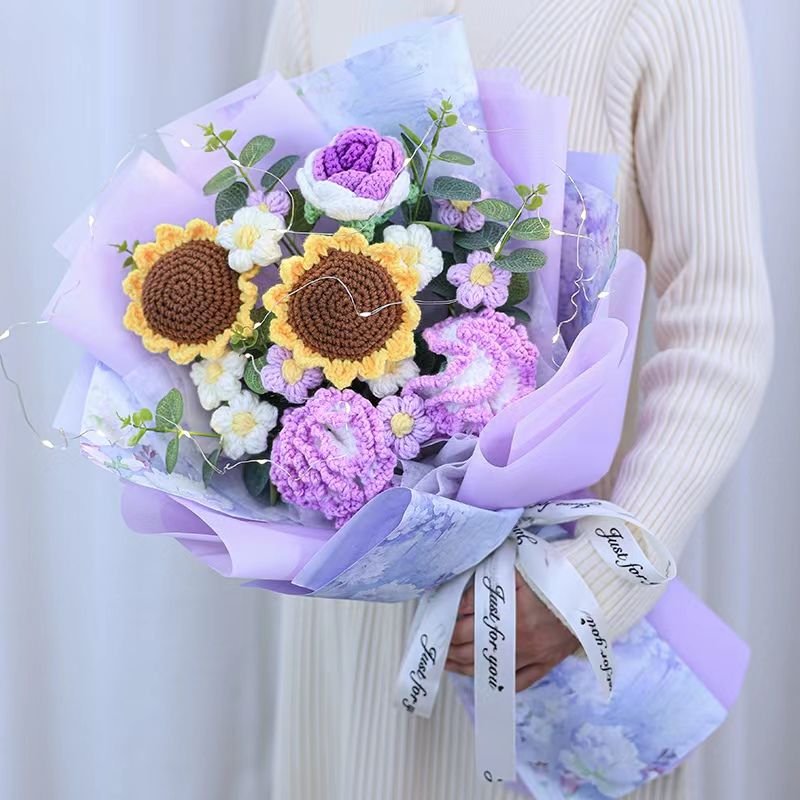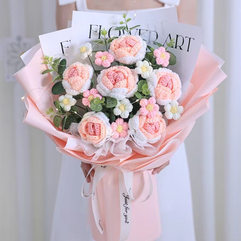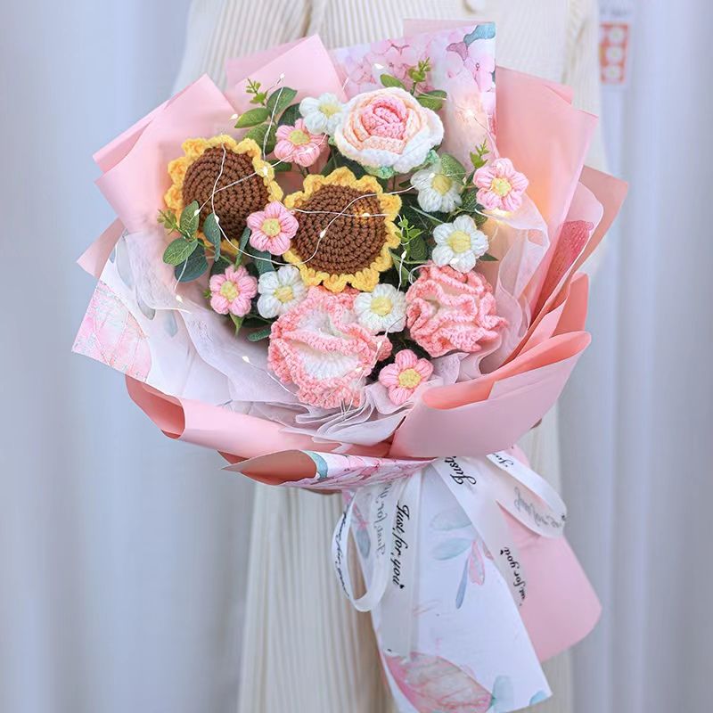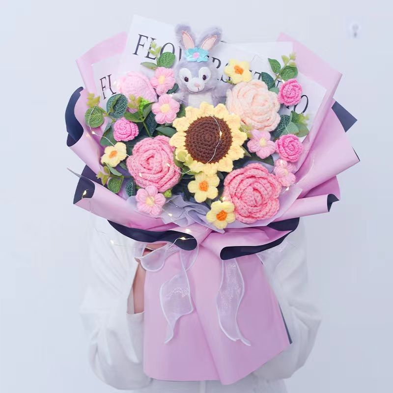 针织花束成品玫瑰手工编织送女友闺蜜生日礼物送女生情人节妇女节
