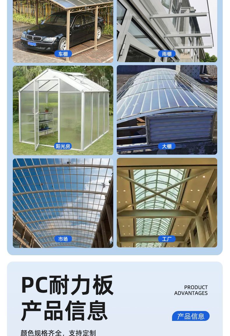 全透明阳光板耐力板采光板阳台防雨塑料硬板大棚雨搭雨棚仿真玻璃
