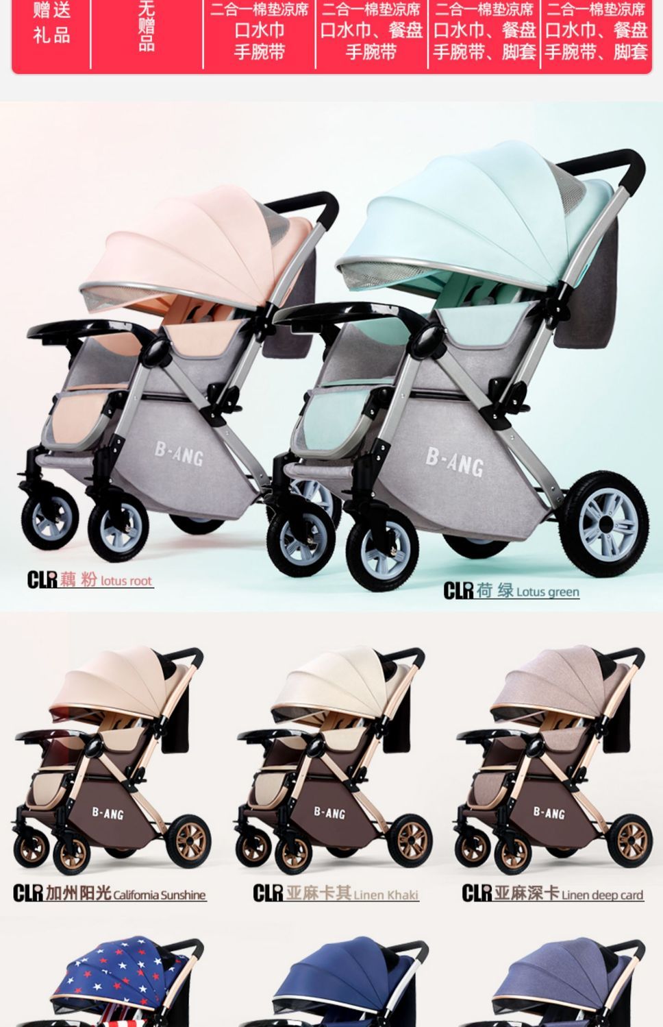 婴儿车可坐可躺可折叠轻便宝宝手推车双排儿童车四轮婴儿手推车