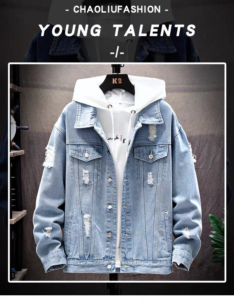 牛仔外套男士2023新款春秋韩版潮流帅气学生休闲夹克男装宽松上衣