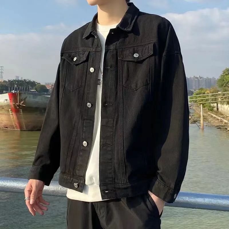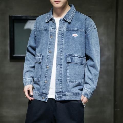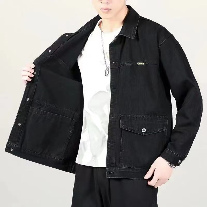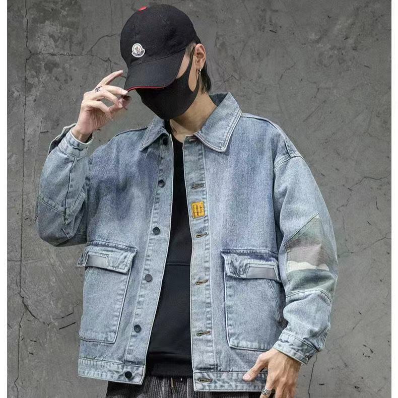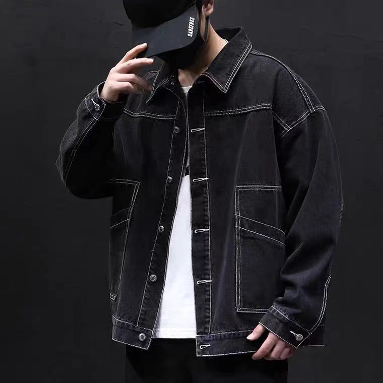 2023春秋新款牛仔外套男宽松耐磨秋季潮牌大码男装工装夹克牛仔衣
