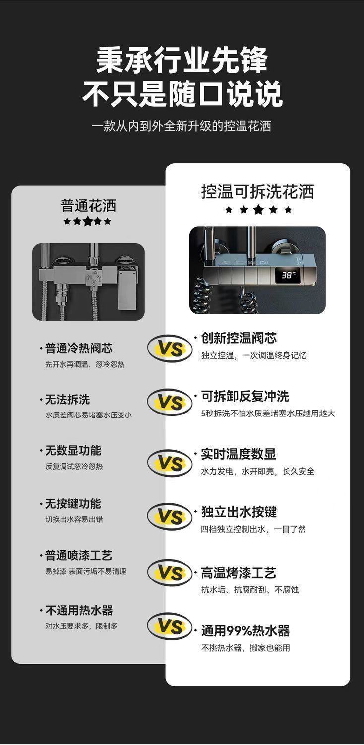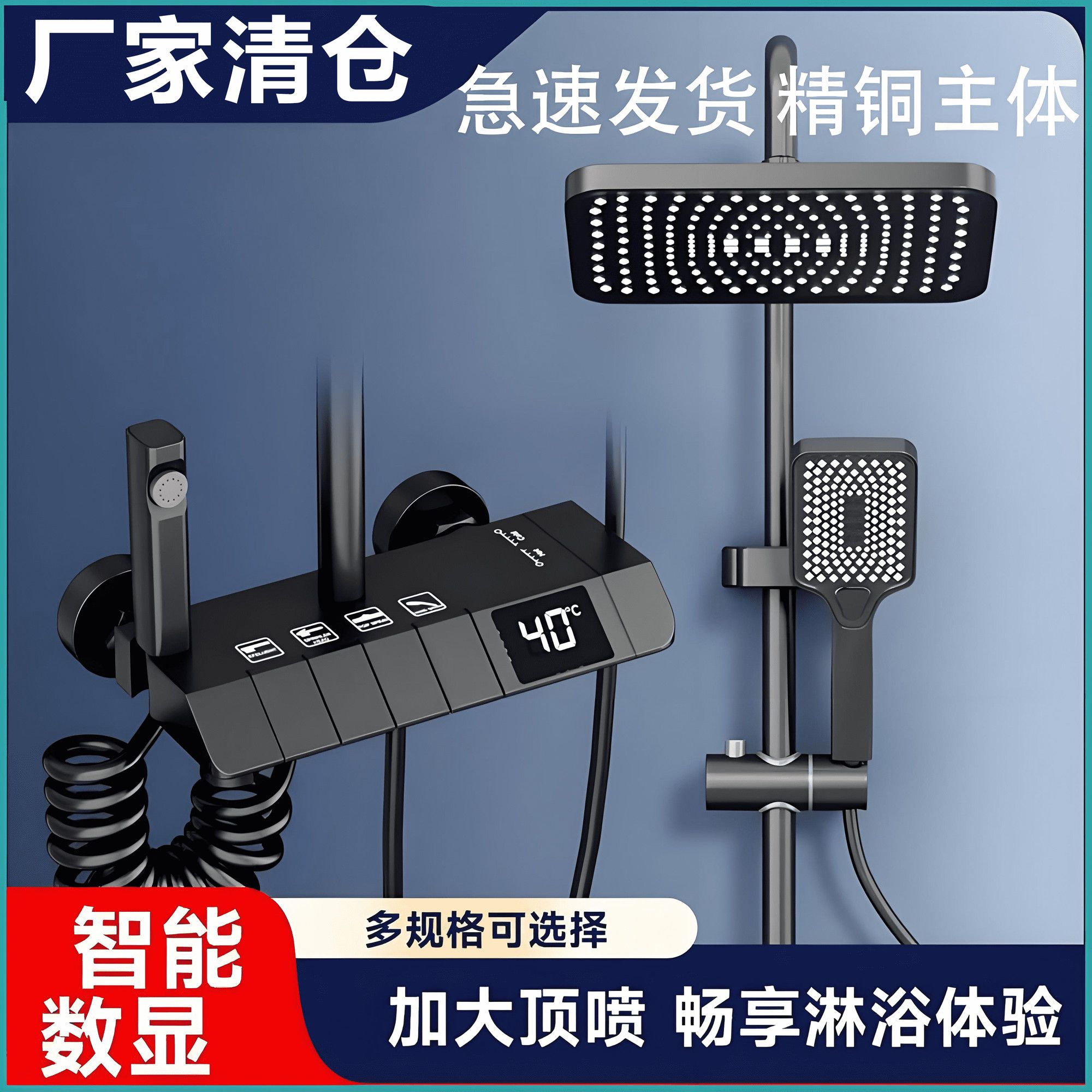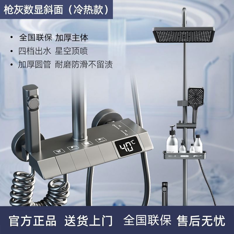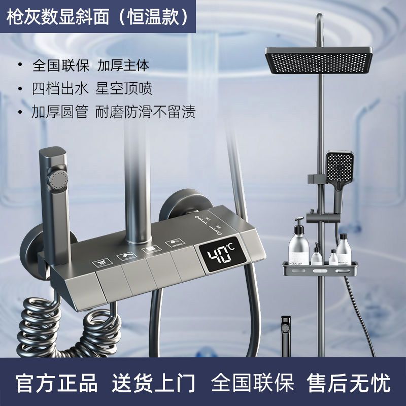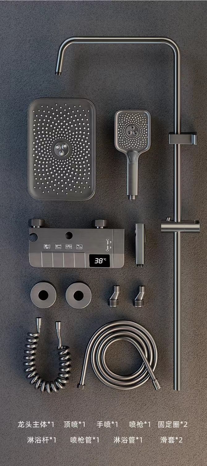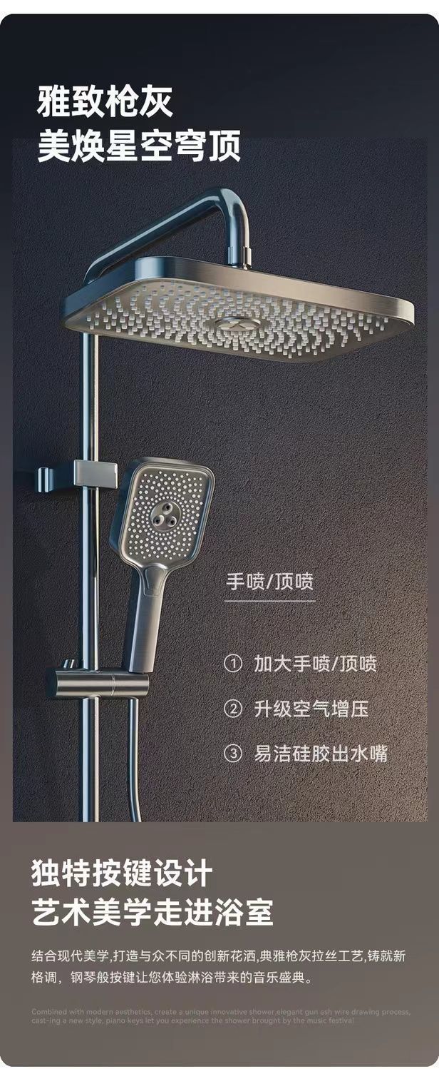 钢琴按键空气智能恒温家用卫生间淋浴花洒套装整套淋浴花洒一整套