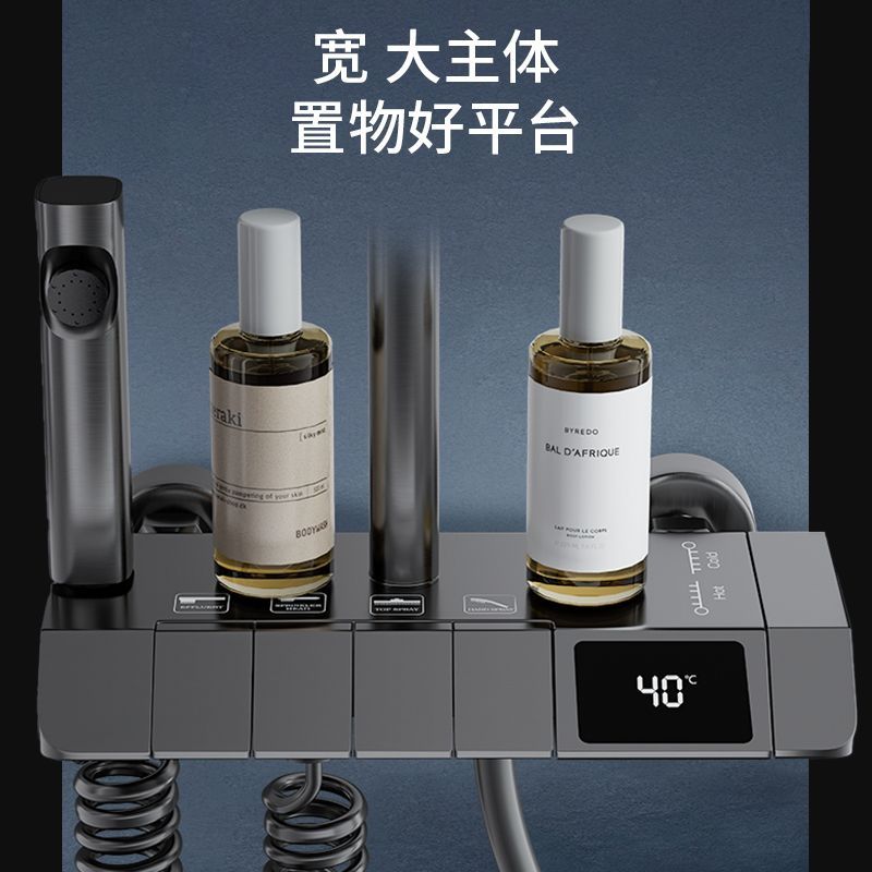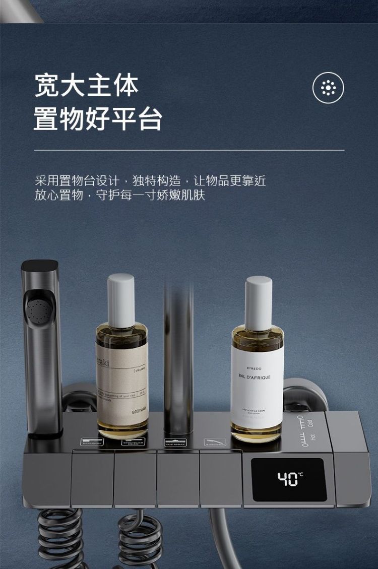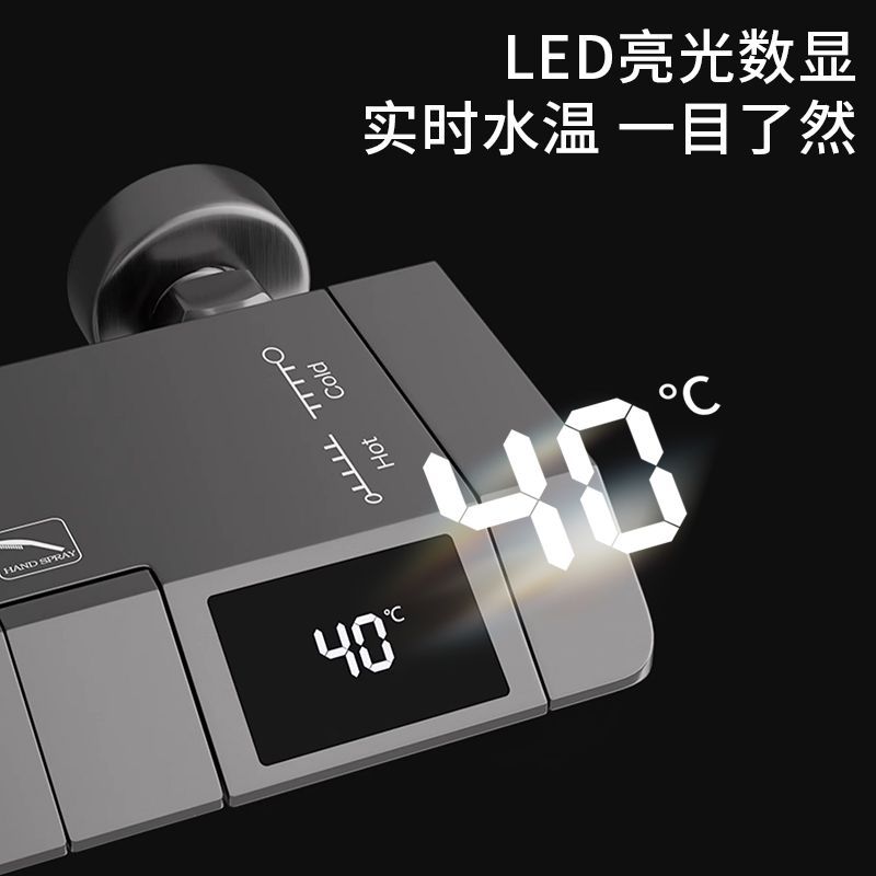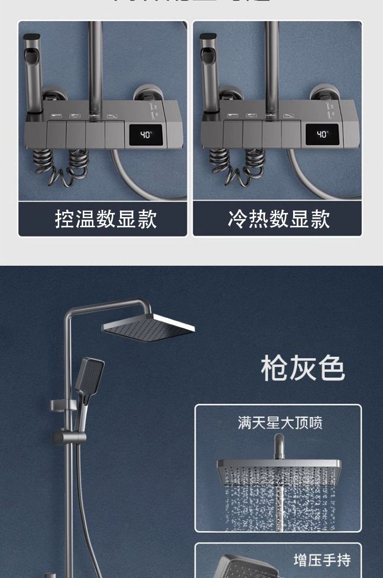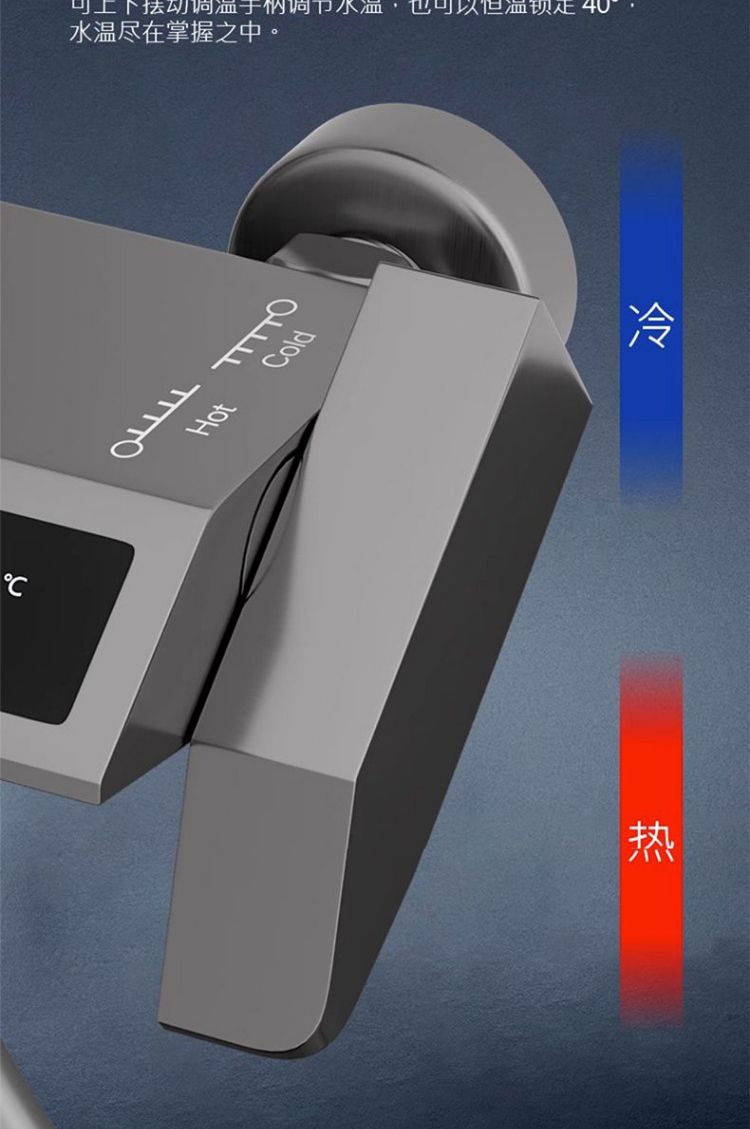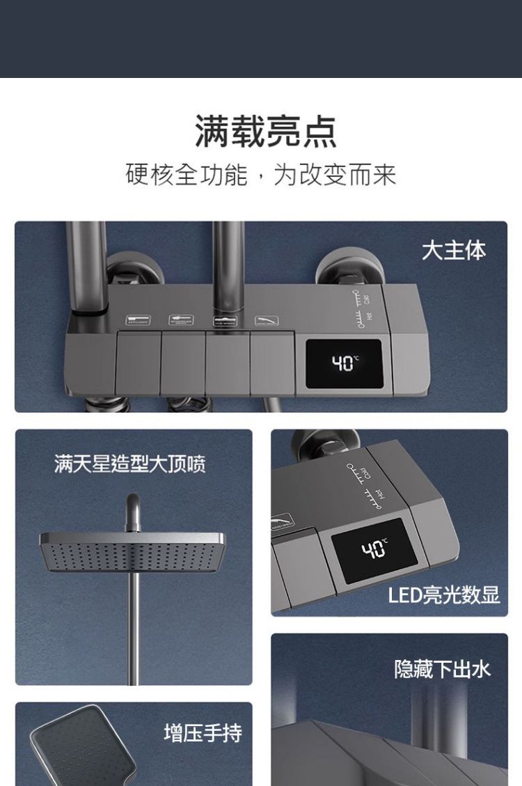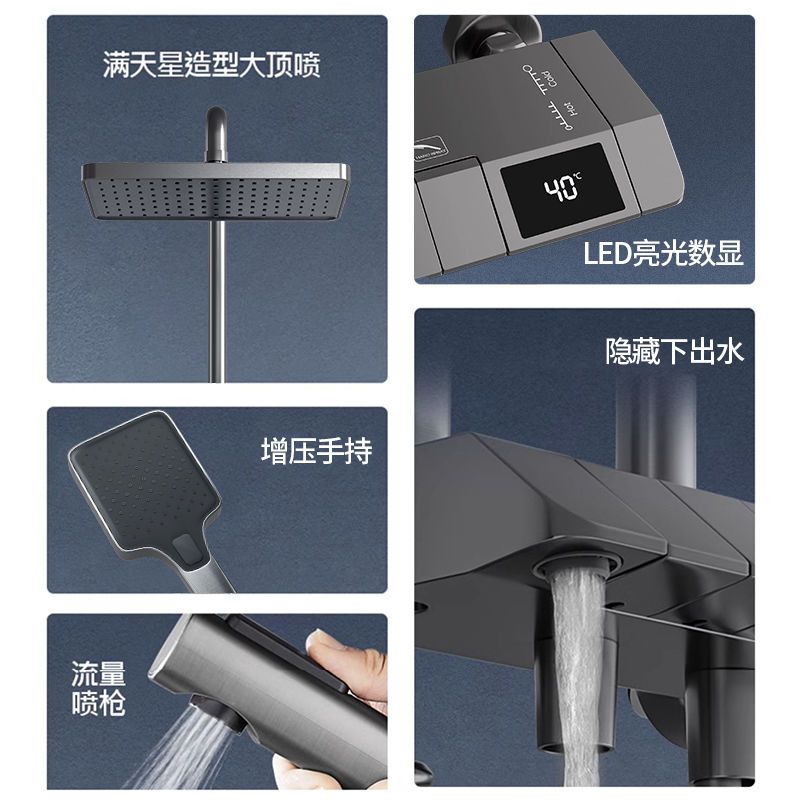 | textured gray four-block keys digital display constant temperature model-big panel shower head suit(质感灰四挡琴键数显恒温款-大面板花洒套装) | USD $55.81 | 999999 piece available |