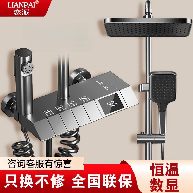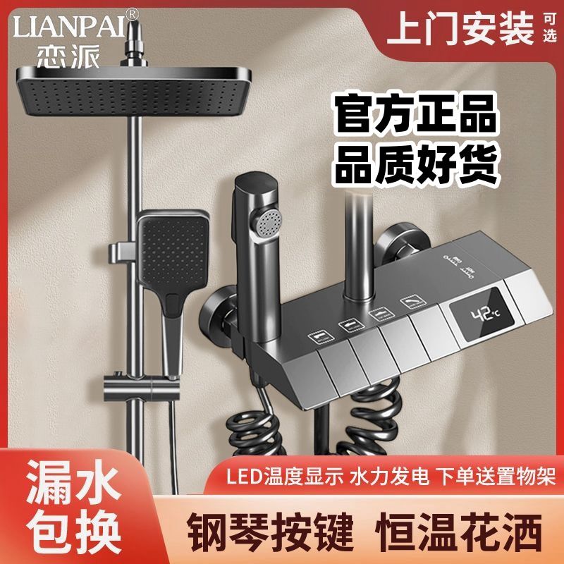 恋派淋浴花洒整套加厚淋浴器通用型数显恒温防烫增压四档琴键花洒