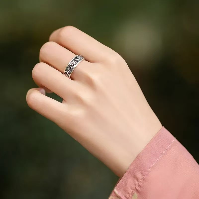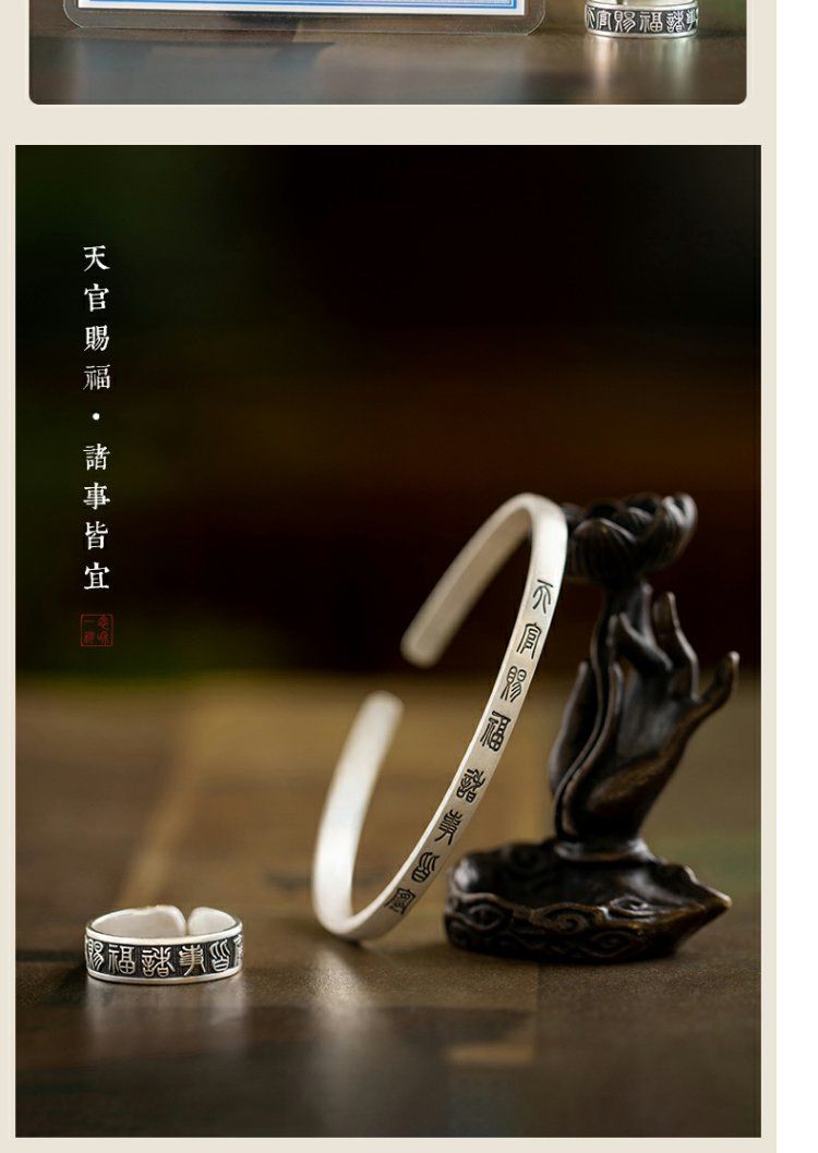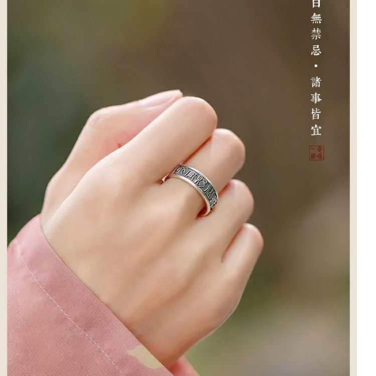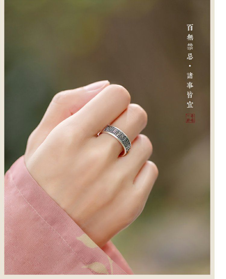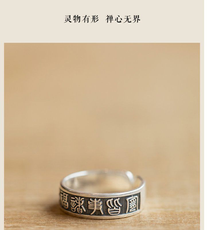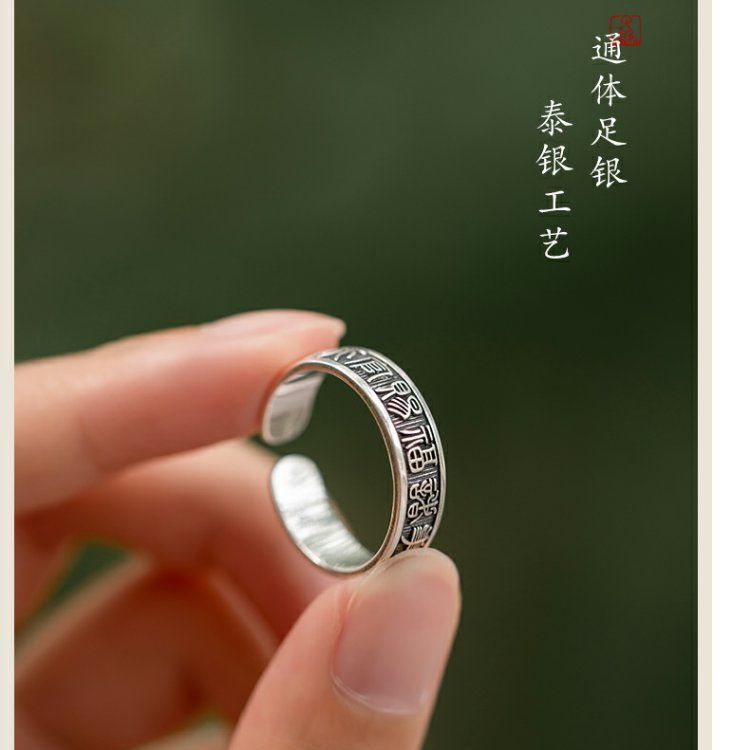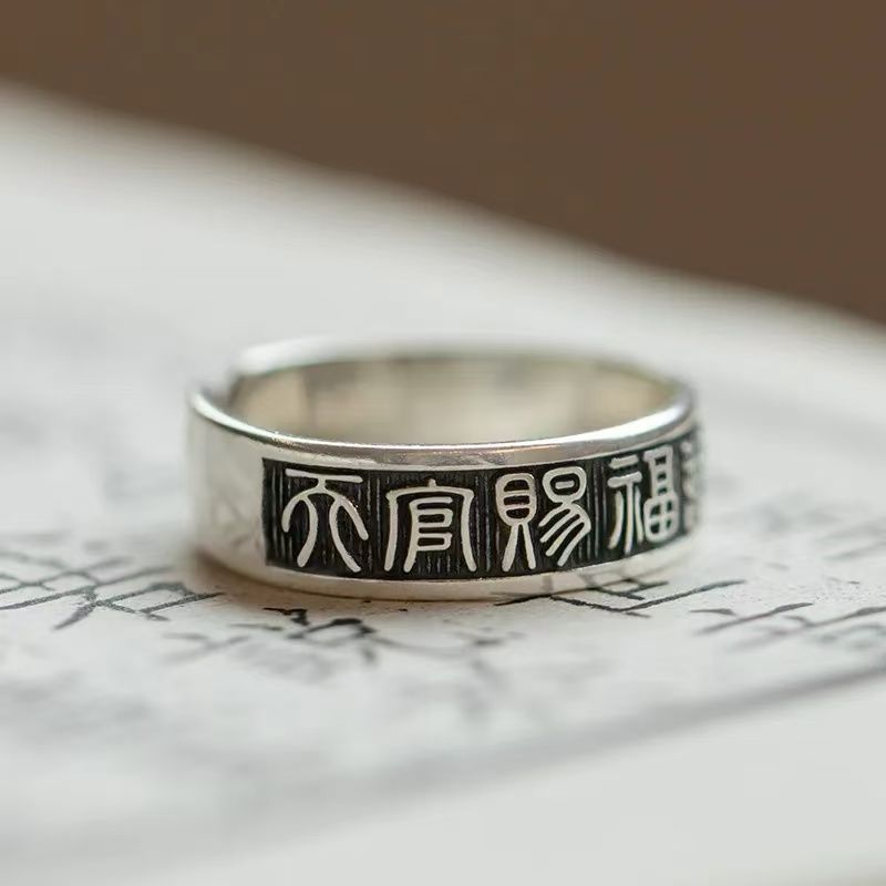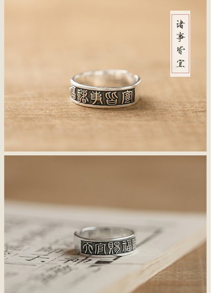 《天官赐福诸事皆宜》999纯银文艺复古戒指男女开口指环正版ins