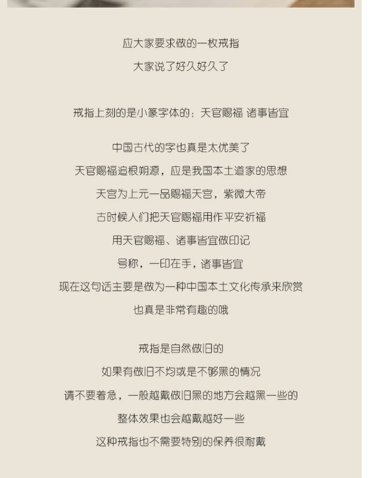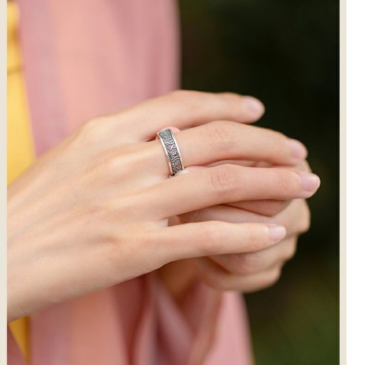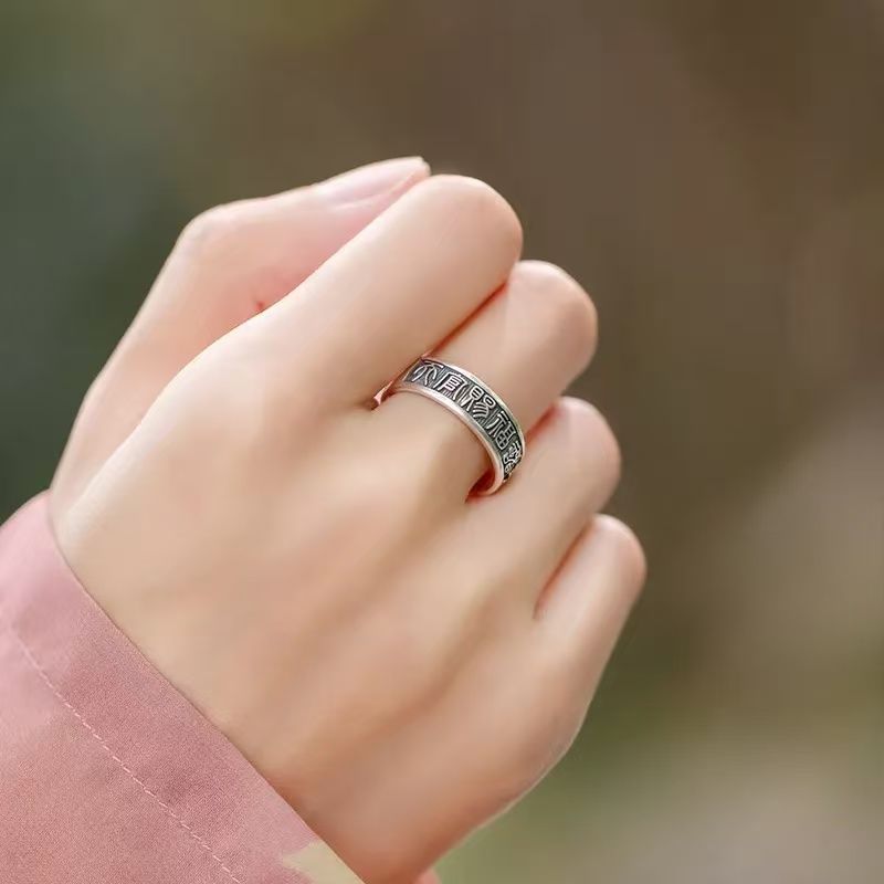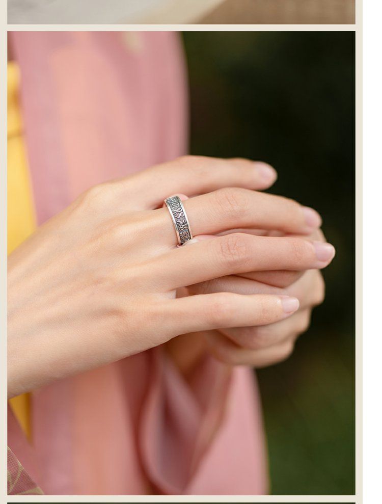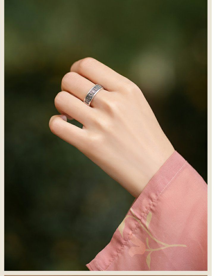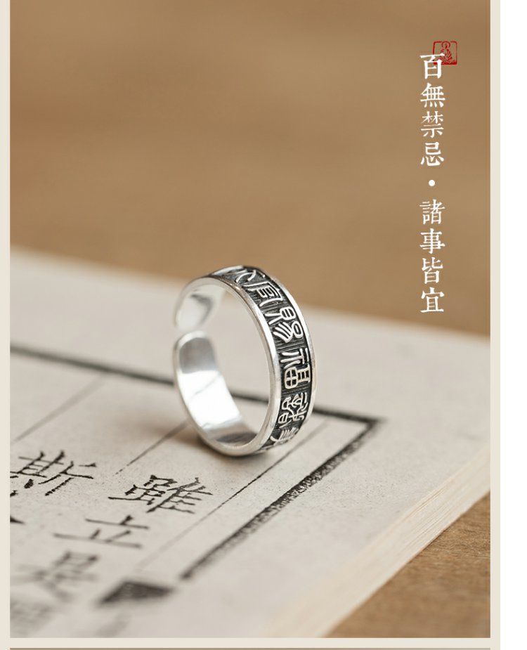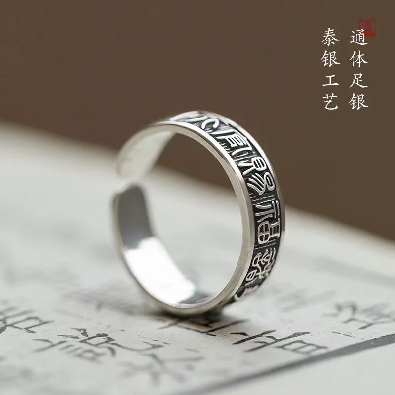 《天官赐福诸事皆宜》999纯银文艺复古戒指男女开口指环正版ins