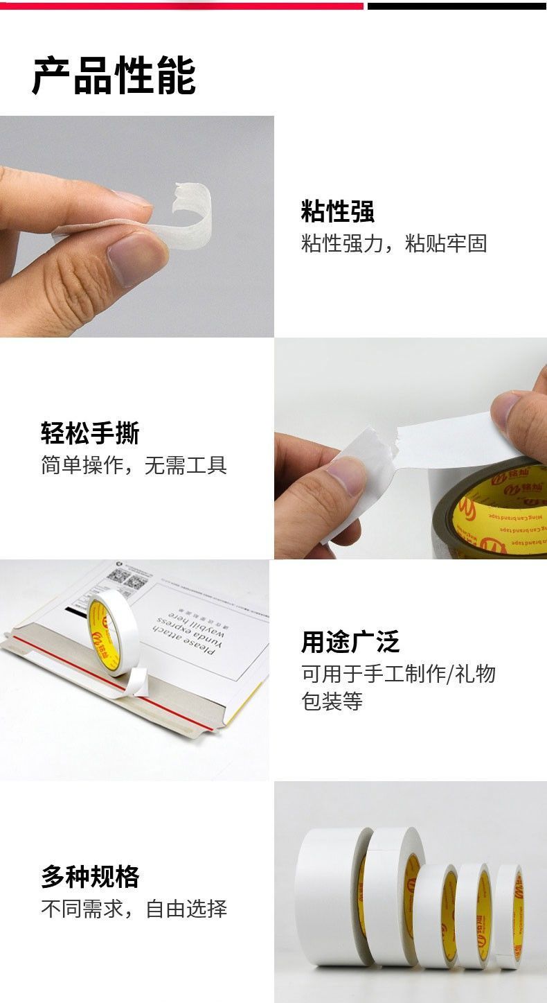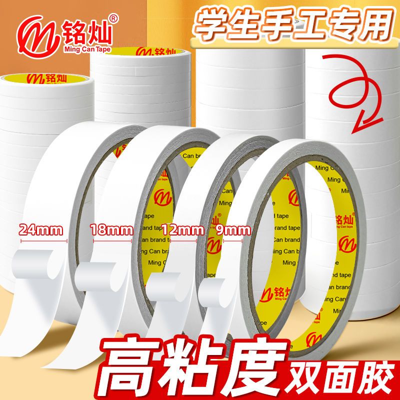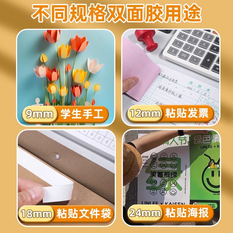 双面胶绵纸胶带学生手工专用办公强力透明手撕高粘度超薄纸质胶带