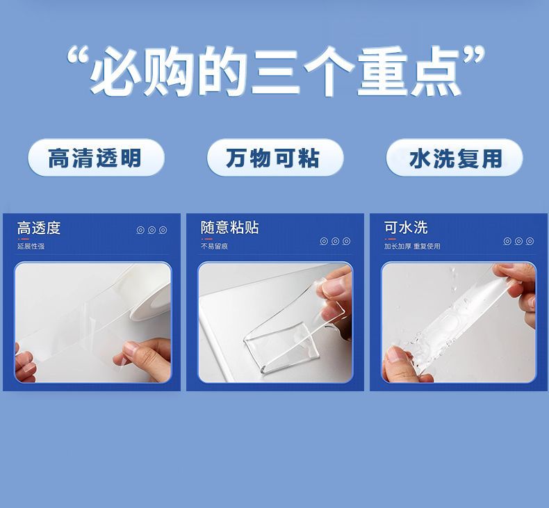 魔力纳米双面胶无痕双面胶贴高粘度透明固定墙面万能双面胶带