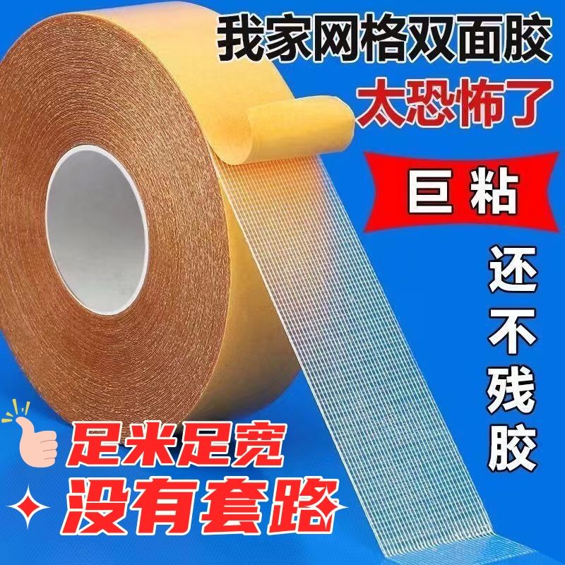 网格双面胶带地垫布基双面胶贴高粘度不留痕迹插排地毯强粘加厚款