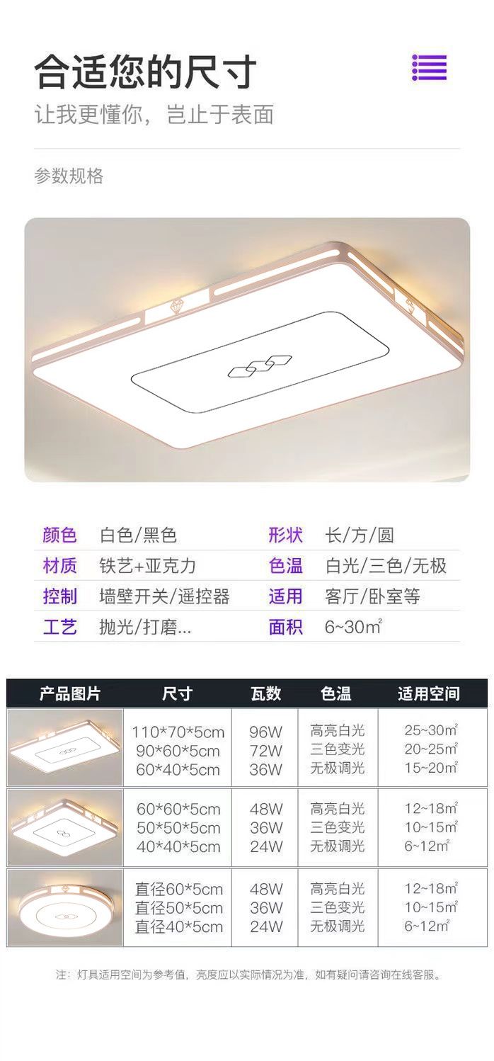 客厅灯长方形LED吸顶灯新款卧室书房灯具简约现代正方形吸顶灯具