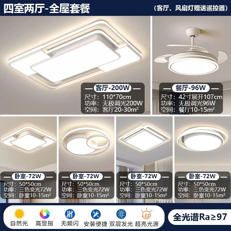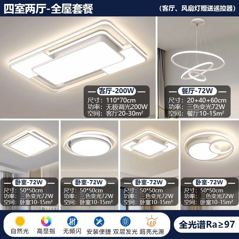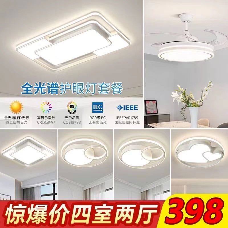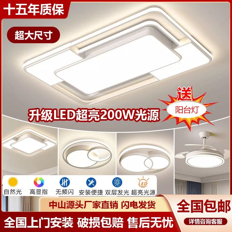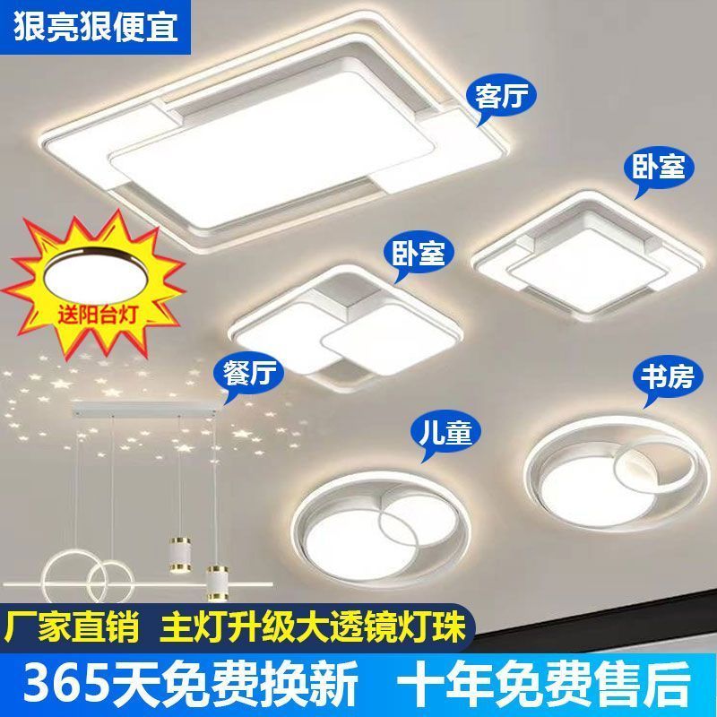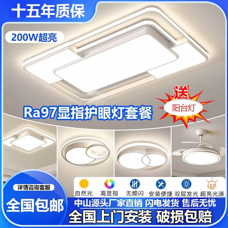 中山灯具2025新款简约现代白色客厅灯卧室灯吸顶灯全屋套餐组合