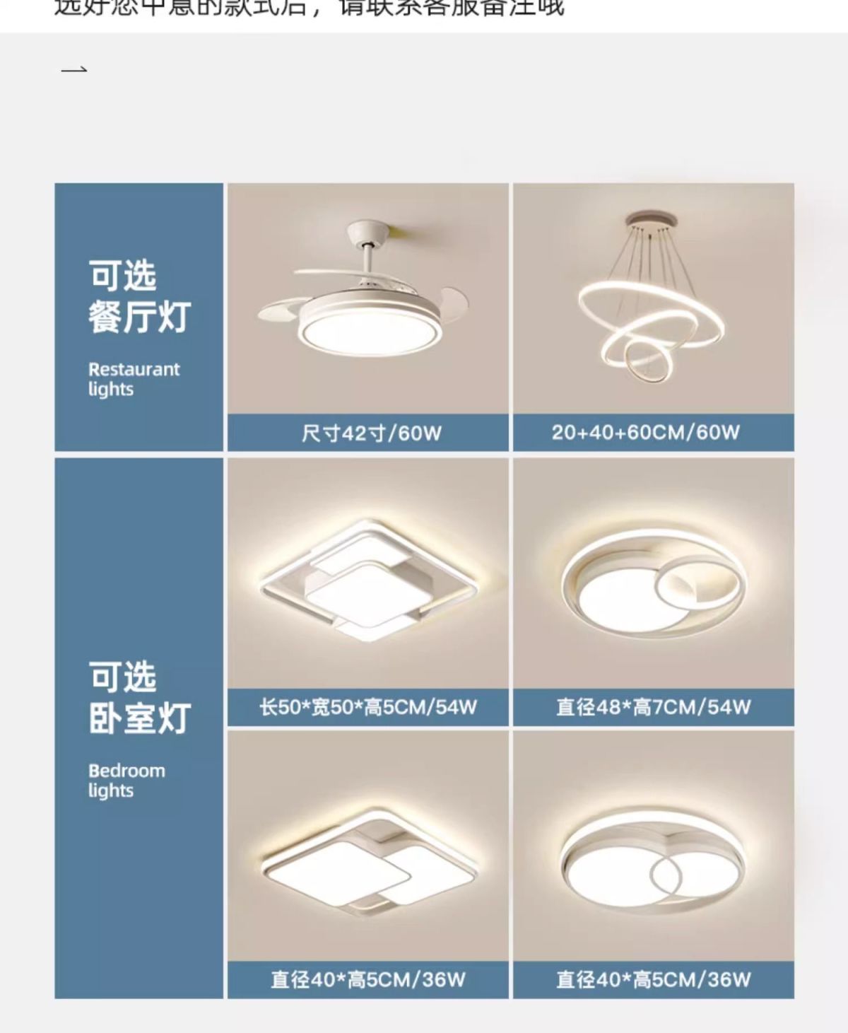 | value-added lighting package [2-room 2-hall chandelier fan] nationwide warranty(超值灯具套餐【2室2厅吊灯风扇】全国联保) | USD $112.33 | 999999 piece available |
