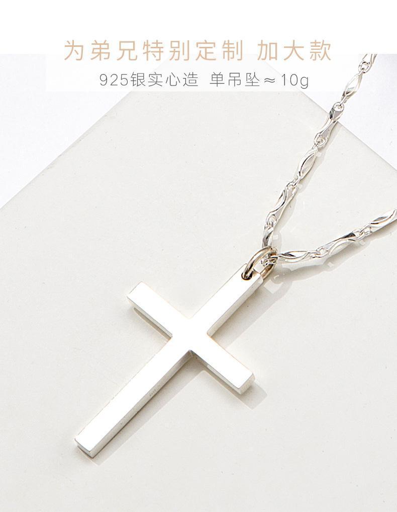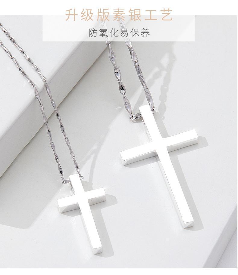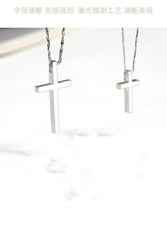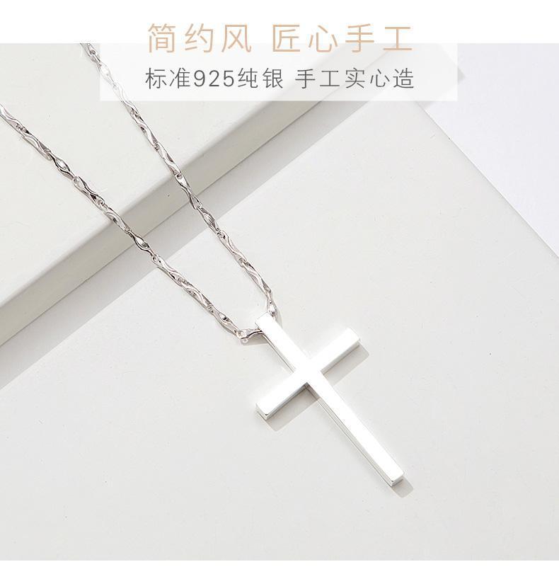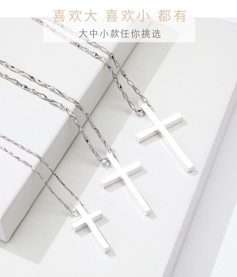 纯银十字架项链男士潮牌男生吊坠简约光面刻字女生锁骨链情侣礼物