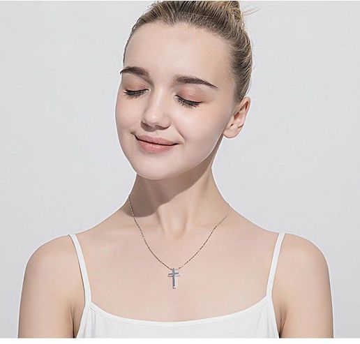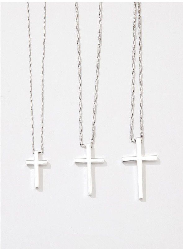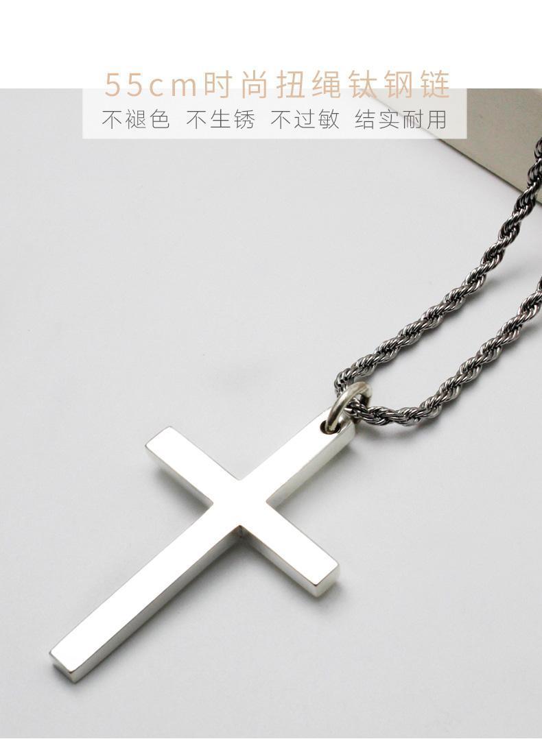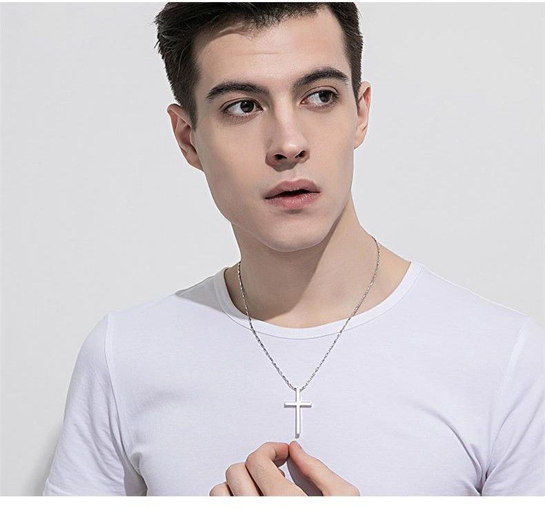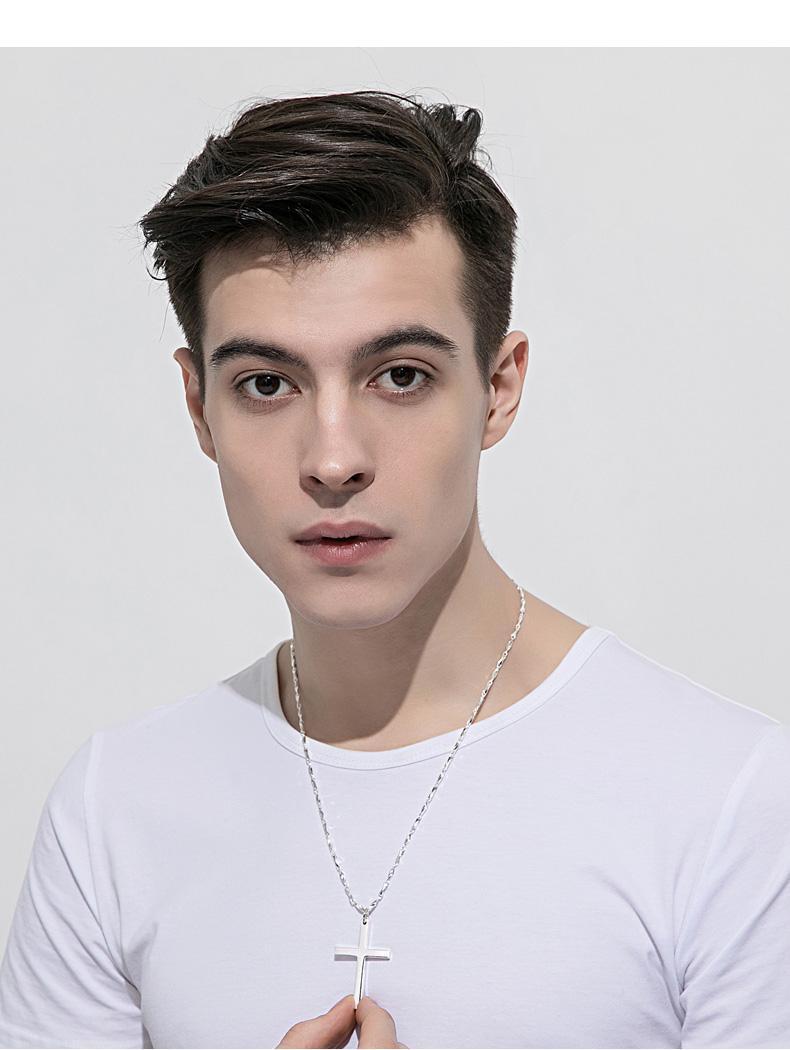 纯银十字架项链男士潮牌男生吊坠简约光面刻字女生锁骨链情侣礼物